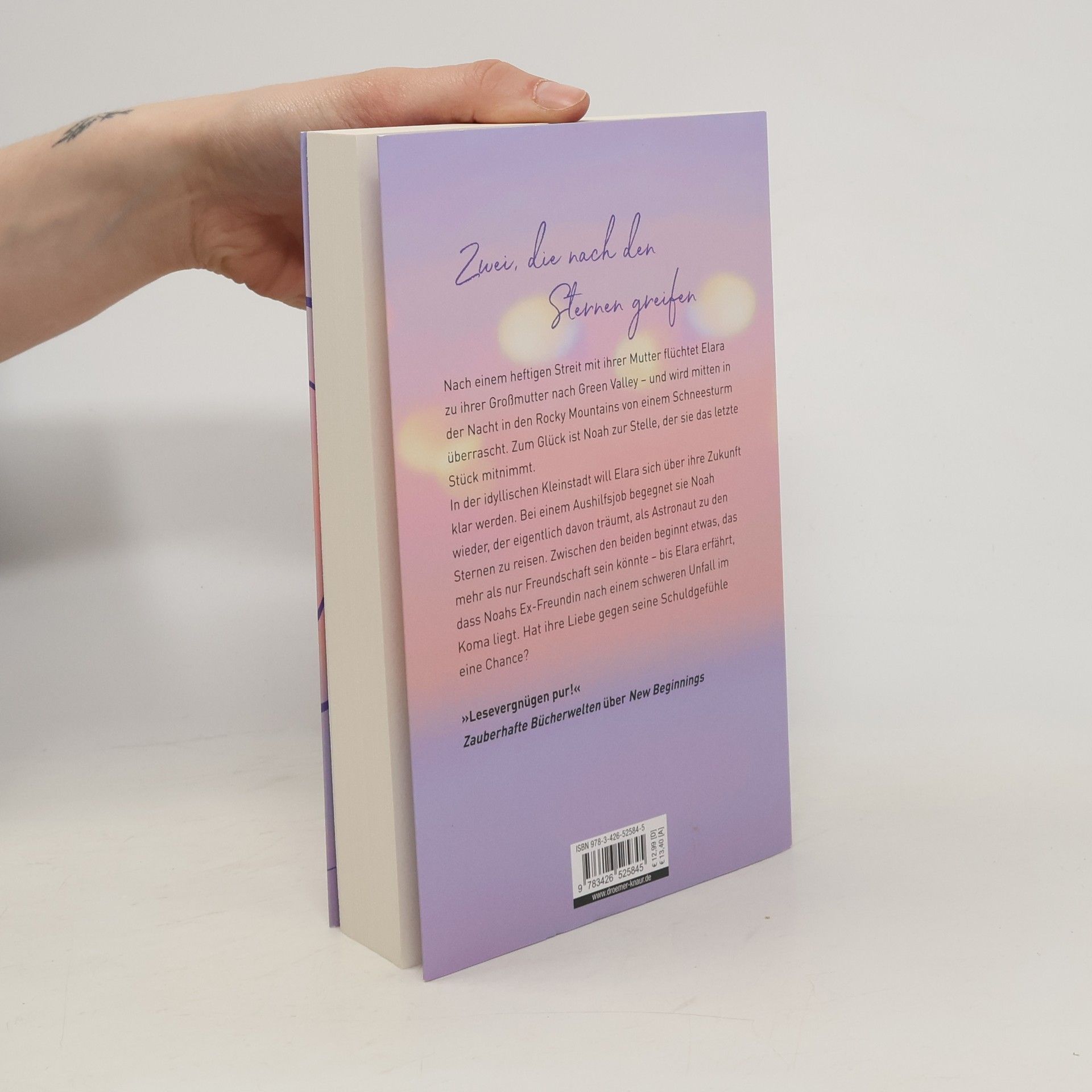 Im dritten New-Adult-Liebesroman der »Green Valley Love«-Reihe verliebt sich die 22-jährige Elara in Noah, einen zukünftigen Astronauten, dessen Ex-Freundin im Koma liegt. Nach einem Streit mit ihrer Mutter flieht Elara zu ihrer Großmutter in Green Valley und wird in den Rocky Mountains von einem Schneesturm überrascht. Noah hilft ihr und bringt sie sicher in die Stadt. In der idyllischen Kleinstadt möchte Elara ihre Zukunft klären und beginnt, an der örtlichen Tankstelle zu arbeiten. Dort trifft sie Noah wieder, der in der angeschlossenen Autowerkstatt aushilft und von einer Karriere als Astronaut träumt. Elara ist hin- und hergerissen zwischen Noahs Charme und seiner plötzlichen Unnahbarkeit, bis sie von seiner Ex-Freundin erfährt, die nach einem schweren Unfall im Koma liegt. Stehen Elara und Noahs aufkeimende Liebe gegen seine Schuldgefühle? Romantisch, prickelnd und gefühlvoll erzählt Lilly Lucas von der großen Liebe in den wilden Rocky Mountains. Die New-Adult-Romane der Reihe schildern jeweils die Liebesgeschichte eines anderen Paares in Green Valley und sind in folgender Reihenfolge erschienen: »New Beginnings«, »New Promises« und »New Dreams«.