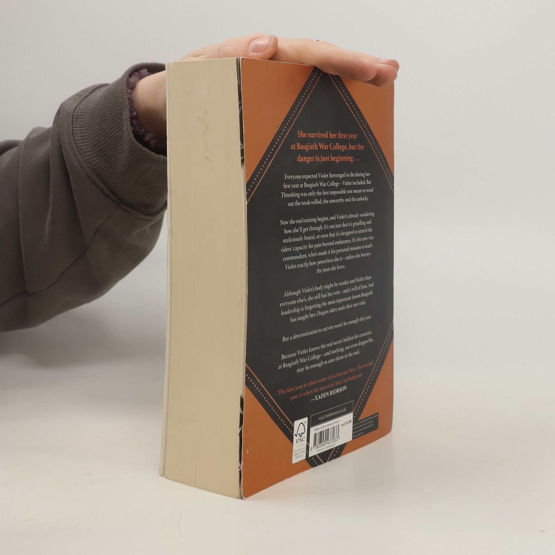 Pokračovanie druhej knihy Štvrté krídlo nesklamalo, povedala by som, že dokonca ma to prekvapilo, nakoľko autorka si v druhej časti uvedomila, že dej je tak strhujúci , že treťou knihou to neskončí, takže sa rozhodla že nakoniec séria bude mať 5 kníh . Pokračovanie je plné bojov o život, mučení , dramat a ohňa . Violet Sorrengailová dokázala takmer nemožné. Z pisárskeho malého dievčaťa sa stala ostrieľaná jazdkyňa, nebojácna a všetkého schopná. "Violent , nezabudni, že krehké je len telo. Ty si nezlomná."