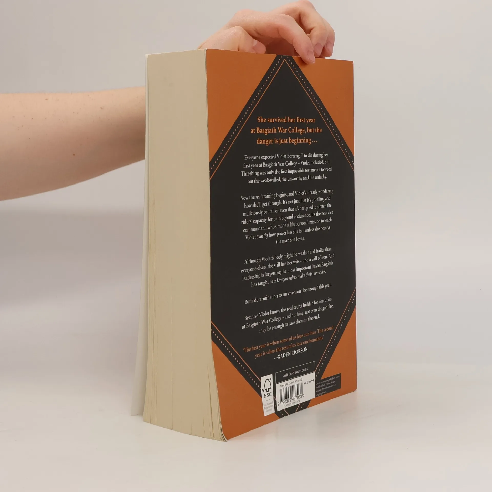 Not as good as the first one but still amazing. It has a great twist!!! Tip: buy the second and third books together because with the cliff hanger Iron Flame ends with, you'll want to start reading Onyx Storm right after!