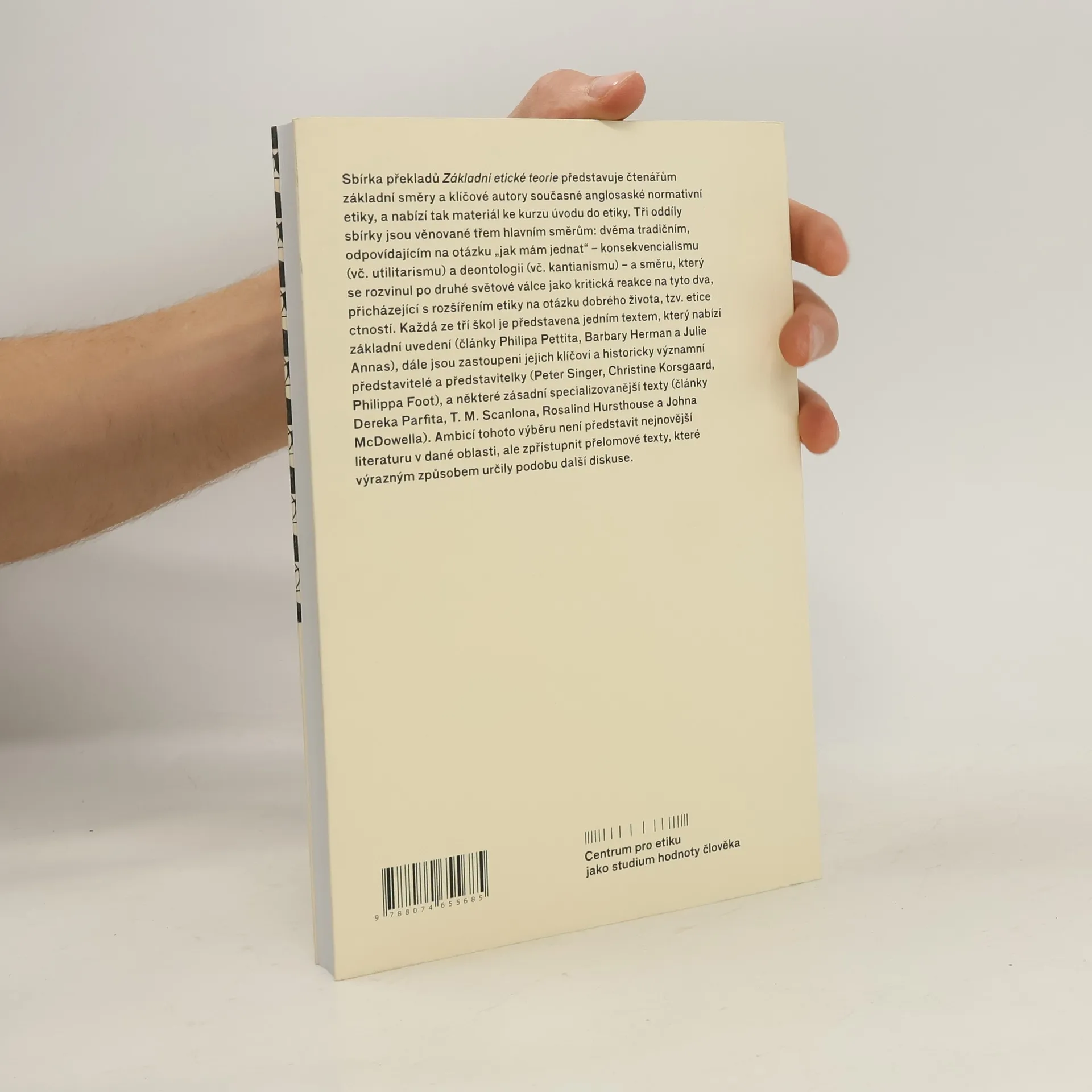 Sbírka překladů Základní etické teorie představuje čtenářům základní směry a klíčové autory současné anglosaské normativní etiky, a nabízí tak materiál ke kurzu úvodu do etiky. Tři oddíly sbírky jsou věnované jejím třem hlavním směrům: dvěma tradičním, odpovídajícím na otázku „jak mám jednat“ – konsekvencialismu (včetně utilitarismu) a deontologii (včetně kantianismu) –, a směru, který se rozvinul po druhé světové válce jako kritická reakce na tyto dva, přicházející s rozšířením etiky na otázku dobrého života, tzv. etice ctností.