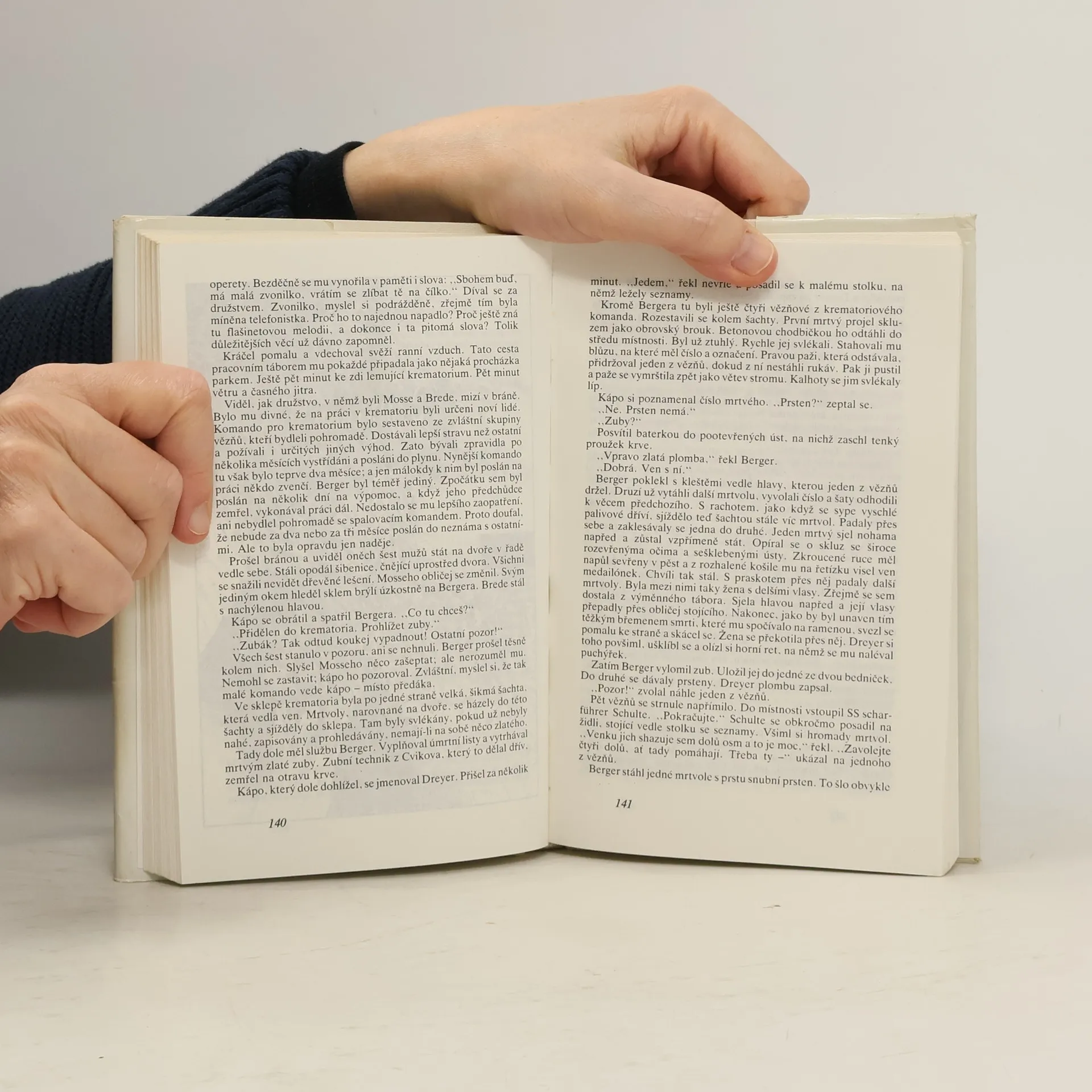 Koncentrační tábor Mellern slouží jako odkladiště vězňů - převážně Židů, kteří v důsledku tělesné slabosti již nejsou schopni práce. V nelidských podmínkách, špíně a o hladu, navíc pod kuratelou bezcitných fašistických katanů tady na sklonku války "přežívá" dvanáct "veteránů", obklopených řadou nově příchozích zbídačelých kostlivců. Téměř všichni již ztratili svou osobnost, minulost a individuální lidské rysy, jejich ponížené lidství se omezuje jen na základní živočišné potřeby. Stali se pouhými vězeňskými čísly s koncentráčnickými mimikrami. Přesto se mezi nimi najdou i tací, kteří si dokázali zachovat své "já". Edice: Živé knihy / ČSPB ; Sv. 144 Doslov: Zdenka Alanová Ilustrace: Jan Krásný
