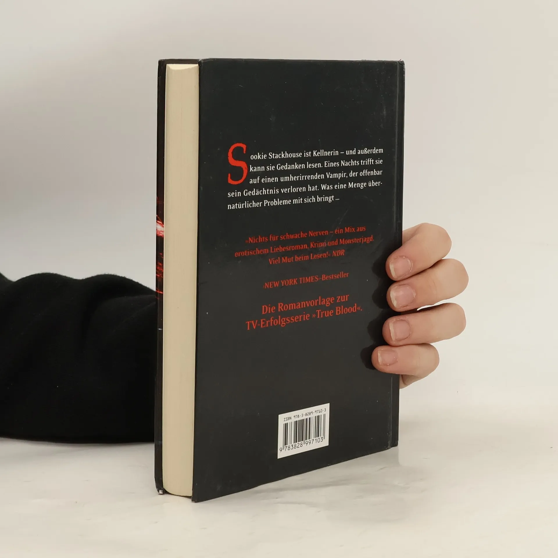 Sookie Stackhouse ist Kellnerin in einer Bar in Louisiana. Sie ist hübsch, jung, ihr Job macht ihr Spaß. Eines Nachts trifft sie auf dem Nachhauseweg auf einen umherirrenden Vampir. Er hat kaum einen Faden am Leib und außerdem sein Gedächtnis verloren. Zum Glück kennt ihn Sookie: Es ist Eric, der Boss ihres Ex-Freunds Bill. An sich ist er ein draufgängerischer, aggressiver Typ, doch mit dem Gedächtnis ist ihm anscheinend ein Teil seiner Persönlichkeit verlorengegangen: auf einmal ist er freundlich, zuvorkommend und schutzbedürftig. Aber er hat ein gewaltiges Problem: Ein Hexenzirkel ist in die kleine Stadt eingefallen und verlangt Schutzgeld von Eric, der ein erfolgreicher Vampir-Bar-Unternehmer ist. Er weigert sich zu zahlen, mit desaströsen Folgen. Sookie nimmt ihn bei sich auf, mit dem Erfolg, daß eine gefährliche Situation die andere jagt. Und da Eric ein sehr attraktiver Vampir ist, kommen die beiden sich bald ziemlich nah.