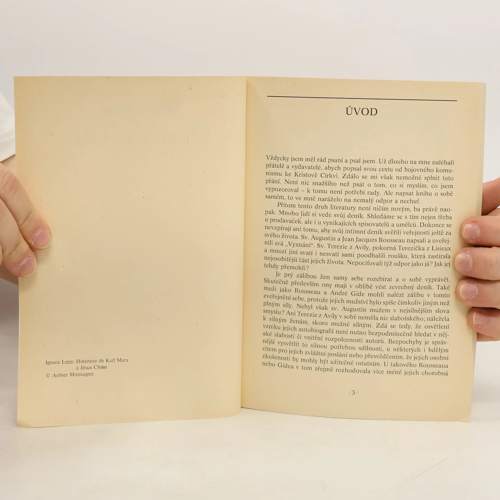 Tato kniha je vyznáním pravověrného, nadšeného francouzského komunisty, který si je vědom, že jeho cesta ke křesťanství a nakonec ke kněžství začala tím, kdy si zažádal o přijetí do komunistické mládeže. Když ale pozná zvrácenost tohoho systému a prožije jako Šavel svůj Damašek, jde další cestu už s Kristem.