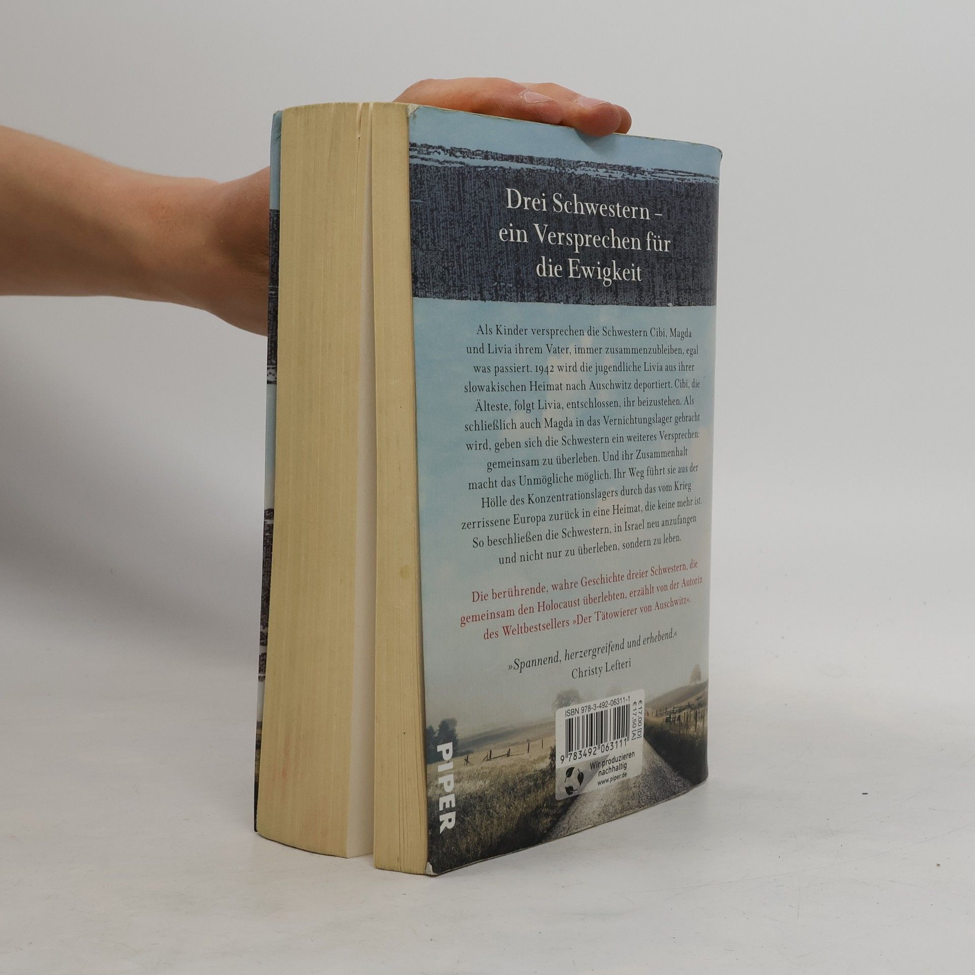Drei Schwestern – ein Versprechen für die Ewigkeit Als Kinder versprechen die Schwestern Cibi, Magda und Livia ihrem Vater, immer zusammenzubleiben. 1942 wird die jugendliche Livia aus ihrer slowakischen Heimat nach Auschwitz deportiert. Cibi, die Älteste, folgt ihr, entschlossen, ihr beizustehen. Als schließlich auch Magda in das Vernichtungslager gebracht wird, geben sich die Schwestern ein weiteres Versprechen: gemeinsam zu überleben. Ihr Zusammenhalt macht das Unmögliche möglich. Ihr Weg führt sie aus der Hölle des Konzentrationslagers durch das vom Krieg zerrissene Europa zurück in eine Heimat, die keine mehr ist. Schließlich beschließen die Schwestern, in Israel neu anzufangen und nicht nur zu überleben, sondern zu leben. Die berührende, wahre Geschichte dreier Schwestern, die den Holocaust gemeinsam überlebten, wird von der Autorin des Weltbestsellers »Der Tätowierer von Auschwitz« erzählt. Heather Morris, gebürtige Neuseeländerin und internationale Bestsellerautorin, widmet sich der unglaublichen Geschichte dieser Schwestern, die gemeinsam das Grauen des Konzentrationslagers Auschwitz-Birkenau durchstanden und in Israel ein neues Leben aufbauten. Dafür traf sie sich persönlich mit den Zeitzeuginnen Livia Ravek und Magda Gutman sowie deren Nachfahren.