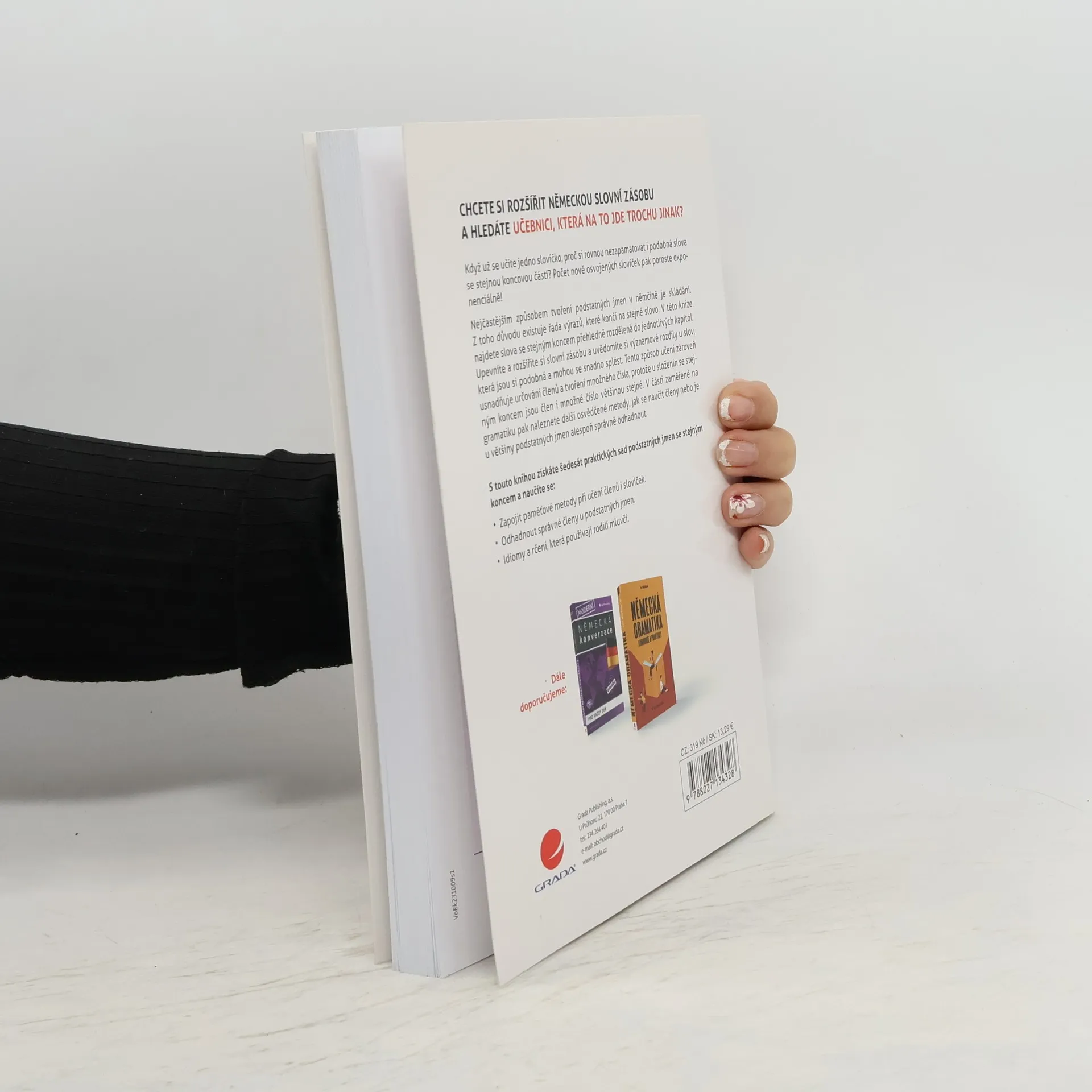 CHCETE SI ROZŠÍŘIT NĚMECKOU SLOVNÍ ZÁSOBU A HLEDÁTE UČEBNICI, KTERÁ NA TO JDE TROCHU JINAK? Když už se učíte jedno slovíčko, proč si rovnou nezapamatovat i podobná slova se stejnou koncovou částí? Počet nově osvojených slovíček pak poroste exponenciálně! Nejčastějším způsobem tvoření podstatných jmen v němčině je skládání. Z toho důvodu existuje řada výrazů, které končí na stejné slovo. V této knize najdete slova se stejným koncem přehledně rozdělená do jednotlivých kapitol. Upevníte a rozšíříte si slovní zásobu a uvědomíte si významové rozdíly u slov, která jsou si podobná a mohou se snadno splést. Tento způsob učení zároveň usnadňuje určování členů a tvoření množného čísla, protože u složenin se stejným koncem jsou člen i množné číslo většinou stejné. V části zaměřené na gramatiku pak naleznete další osvědčené metody, jak se naučit členy nebo je u většiny podstatných jmen alespoň správně odhadnout. S touto knihou získáte šedesát praktických sad podstatných jmen se stejným koncem a naučíte se: • Zapojit paměťové metody při učení členů i slovíček. • Odhadnout správné členy u podstatných jmen. • Idiomy a rčení, která používají rodilí mluvčí.
