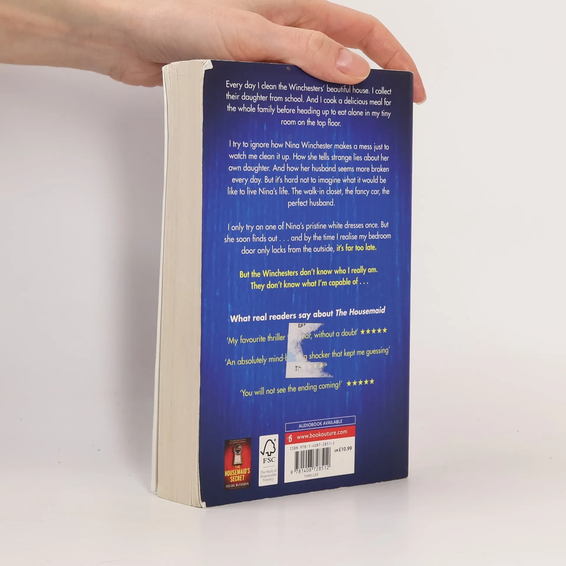 "Welcome to the family," Nina Winchester says as I shake her elegant, manicured hand. I smile politely, gazing around the marble hallway. Working here is my last chance to start fresh. I can pretend to be whoever I like. But I'll soon learn that the Winchesters' secrets are far more dangerous than my own . . .Every day I clean the Winchesters' beautiful house top to bottom. I collect their daughter from school. And I cook a delicious meal for the whole family before heading up to eat alone in my tiny room on the top floor. I try to ignore how Nina makes a mess just to watch me clean it up. How she tells strange lies about her own daughter. And how her husband Andrew seems more broken every day. But as I look into Andrew's handsome brown eyes, so full of pain, it's hard not to imagine what it would be like to live Nina's life. The walk-in closet, the fancy car, the perfect husband. I only try on one of Nina's pristine white dresses once. Just to see what it's like. But she soon finds out... and by the time I realize my attic bedroom door only locks from the outside, it's far too late. But I reassure myself: the Winchesters don't know who I really am. They don't know what I'm capable of . . .