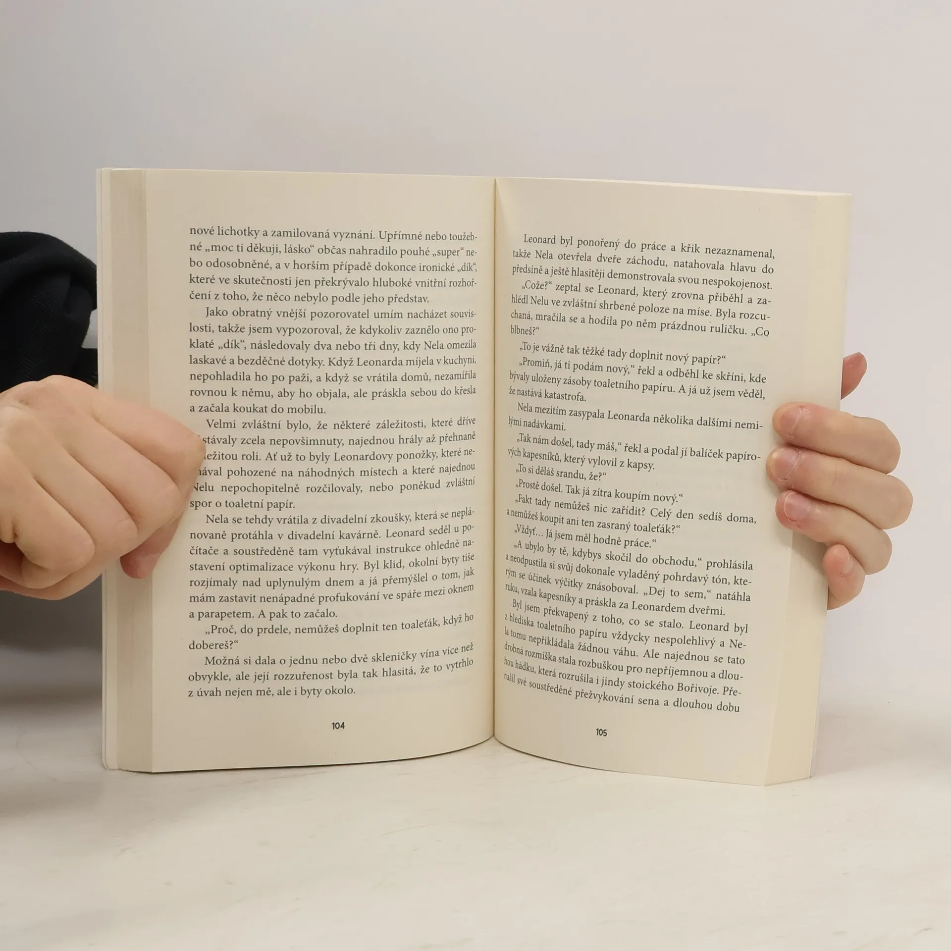 Romantická novela o vztahu mezi melancholickým ajťákem Leonardem a herečkou Nelou má netradičního vypravěče: je jím byt, do něhož se mladý pár společně nastěhuje. Vypravěč má velkou terasu, zakládá si na svém atypickém půdorysu a s lidskými osudy zatím nemá mnoho zkušeností. Je však bystrým pozorovatelem a neunikne mu nic z toho, co jeho první majitelé prožívají. A když se občas vytočí, dokáže vypustit vodu z trubek nebo vyhodit pojistky. Nela sní o velké roli, Leonard právě opustil dobře placenou práci v herním studiu a touží prorazit s vlastní hrou. Když se kvůli napjatému rozpočtu rozhodnou vzít do podnájmu kamaráda Lukáše, začne se jejich život ubírat úplně novým směrem…