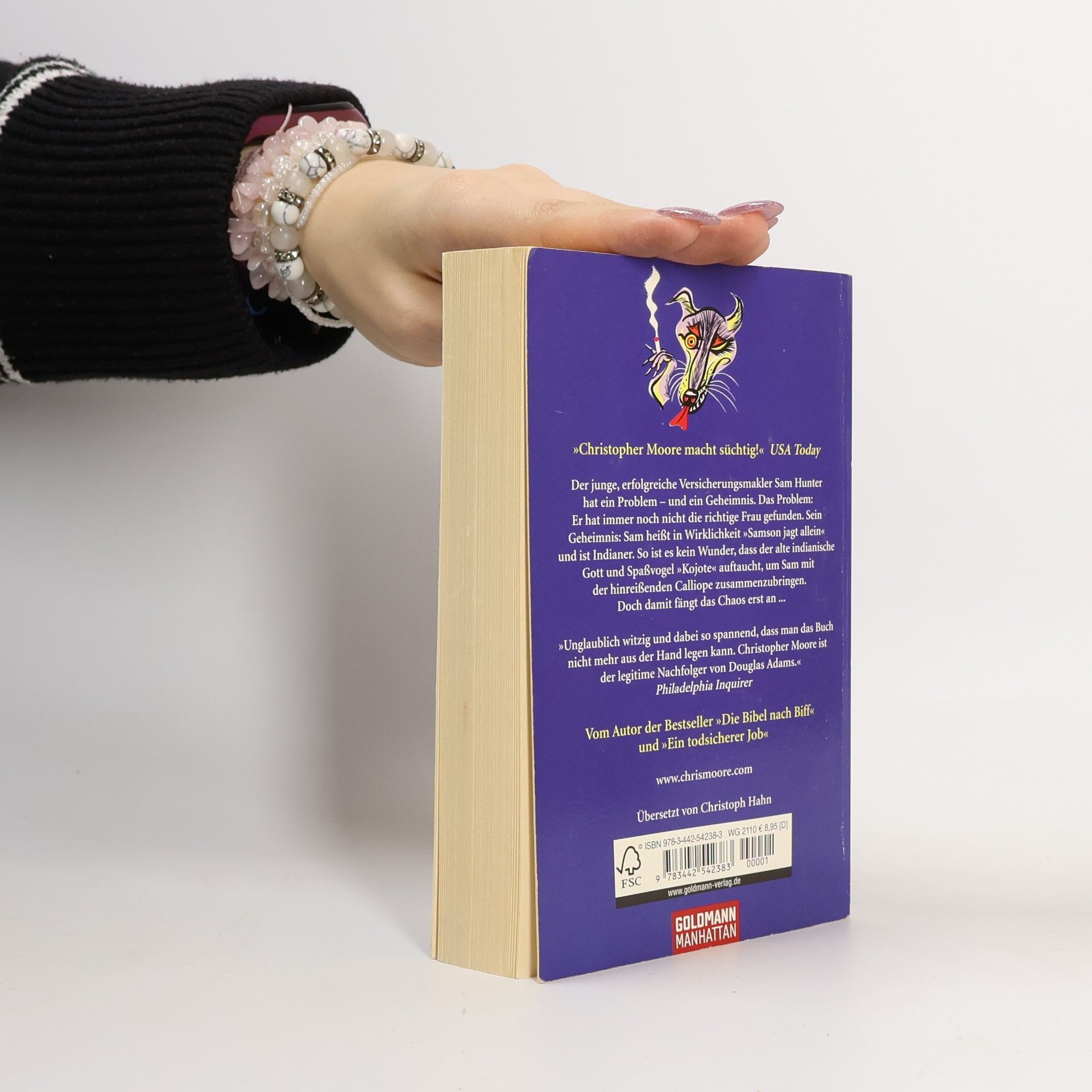 Der junge erfolgreiche Versicherungsmakler Sam Hunter hat ein Problem und ein Geheimnis. Das Problem: Er hat immer noch nicht die richtige Frau gefunden. Sein Geheimnis: Sam heißt in Wirklichkeit „Samson jagt allein“ und ist Indianer. So ist es kein Wunder, dass der alte indianische Gott und Spaßvogel „Kojote“ auftaucht, um Sam mit der hinreißenden Calliope zusammenzubringen. Doch damit fängt das Chaos erst an … • Vom Autor der Bestseller „Die Bibel nach Biff“ und „Ein todsicherer Job“.