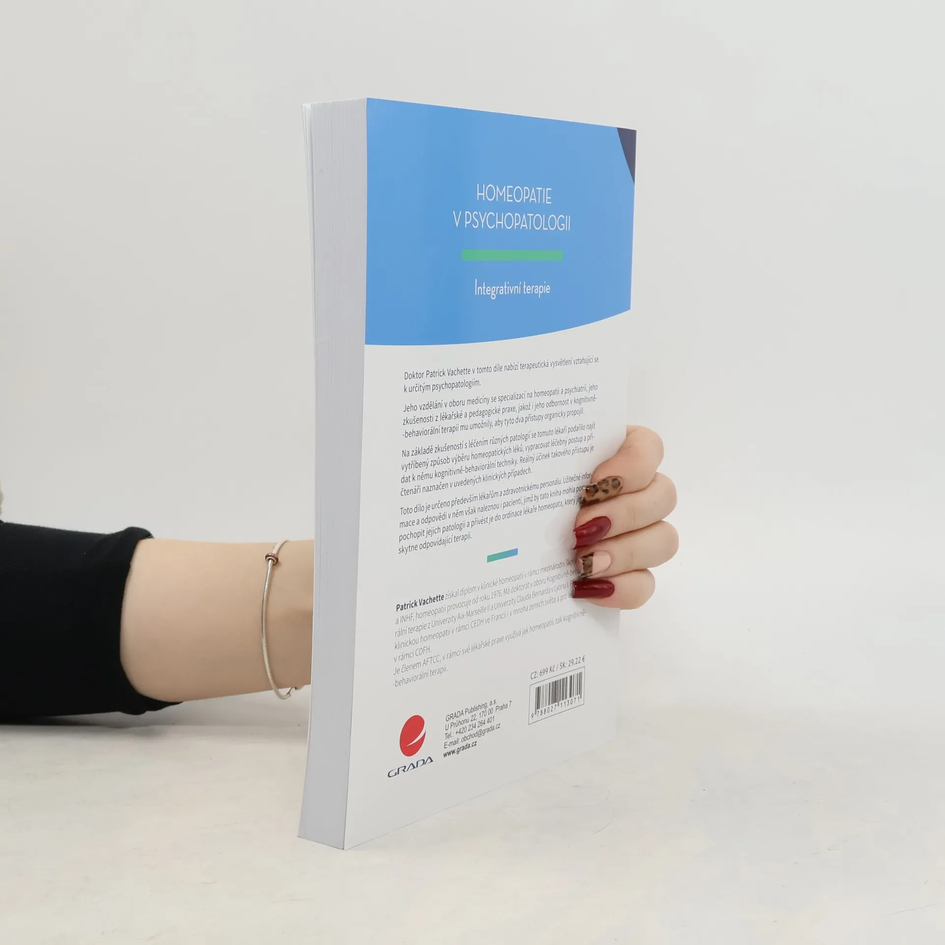 Doktor Patrick Vachette v tomto díle nabízí terapeutická vysvětlení vztahující se k určitým psychopatologiím. Jeho vzdělání v oboru medicíny se specializací na homeopatii a psychiatrii, jeho zkušenosti z lékařské a pedagogické praxe, jakož i jeho odbornost v kognitivně-behaviorální terapii mu umožnily, aby tyto dva přístupy organicky propojil. Na základě zkušeností s léčením různých patologií se tomuto lékaři podařilo najít vytříbený způsob výběru homeopatických léků, vypracovat léčebný postup a přidat k němu kognitivně-behaviorální techniky. Reálný účinek takového přístupu je čtenáři naznačen v uvedených klinických případech. Toto dílo je určeno především lékařům a zdravotnickému personálu. Užitečné informace a odpovědi v něm však naleznou i pacienti, jimž by tato kniha mohla pomoci pochopit jejich patologii a přivést je do ordinace lékaře homeopata, který jim poskytne odpovídající terapii.