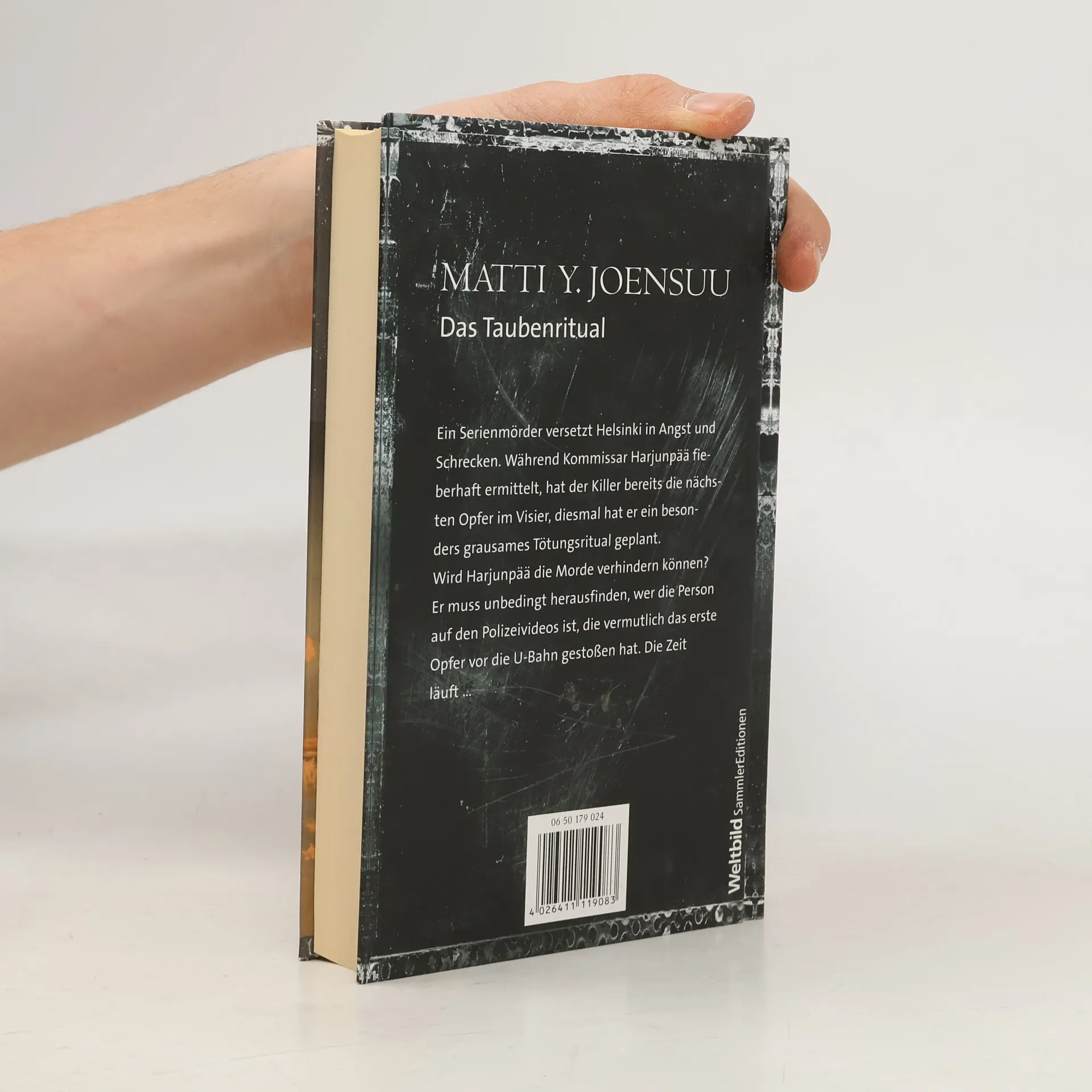 Ein religiöser Fanatiker plant seinen nächsten Mord. Ein neuer Fall für Kommissar Harjunpää. Ein Serienmörder versetzt Helsinki in Angst und Schrecken. Während der sympathische Kommissar Harjunpää fieberhaft ermittelt, hat der Killer bereits die nächsten Opfer im Visier, diesmal hat er ein besonders grausames Tötungsritual geplant. Wird Harjunpää die Morde verhindern können? Erst muss er herausfinden, wer die Person auf den Polizeivideos ist, die vermutlich das erste Opfer vor die U-Bahn gestoßen hat. Die Zeit läuft, die Bombe tickt … Ausgezeichnet mit dem Finnischen Krimipreis.