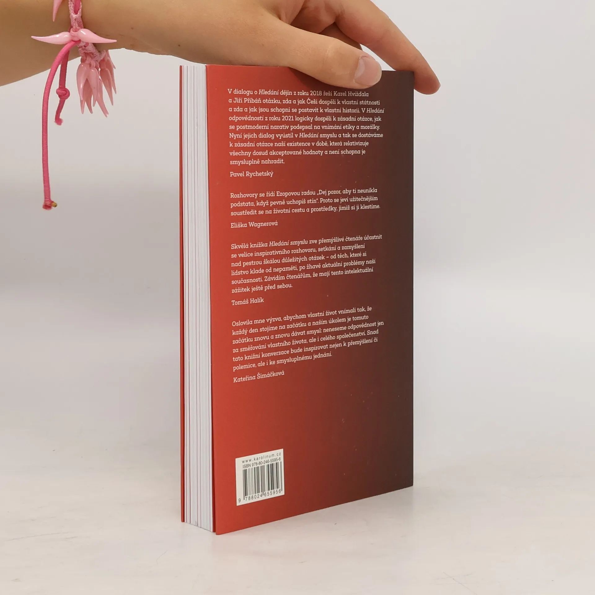 V Hledání smyslu se autoři vracejí k tomu, co je provázelo po celé roky práce na dříve vydaných knihách společných rozhovorů: zda se ke všem těm právním, historickým a etickým tématům váže ještě cosi obecnějšího, hledání samotného smyslu existence člověka i společnosti. Hledání smyslu znamená schopnost určit rozdíl mezi tím, co nás přesahuje a zůstává nám nepřístupné, tedy transcendencí, a tím, jak si tento přesah převádíme do imanentního světa naší kultury, umění nebo společenských pravidel. A protože právě o tom s gustem a zalíbením oba autoři diskutují, zůstává jejich kniha, navzdory svým velkým ambicím, především čtenářsky atraktivní.