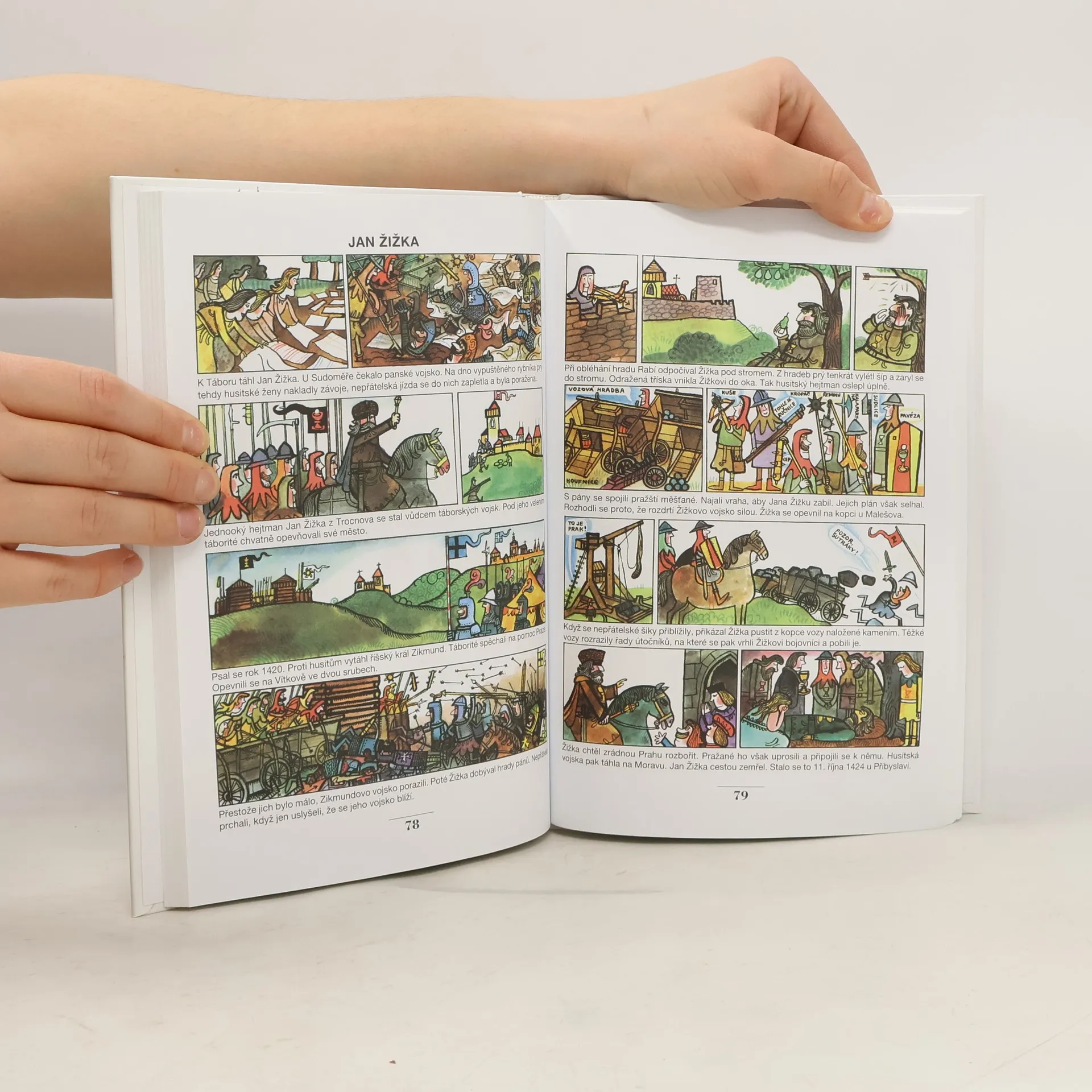 Oblíbená knížka obrázkových seriálů, která hravě, humorně, ale velmi výstižně přibližuje čtenářům nejstarší i novější dějiny naší vlasti. Autoři vyprávějí o příchodu praotce Čecha, o Bivojovi, Libušině proroctví, Karlu IV., Janu Husovi, golemovi, avšak i o slavných spisovatelích, hudebních skladatelích, vědcích a vynálezcích. Knížka končí vznikem Československé republiky v roce 1918. Historii svého národa by měl znát každý, a malý i větší čtenář se právě tady dozví mnohé, co ještě nevěděl, nebo si připomene, co už pozapomněl. A navíc se pobaví krátkými texty a veselými obrázky