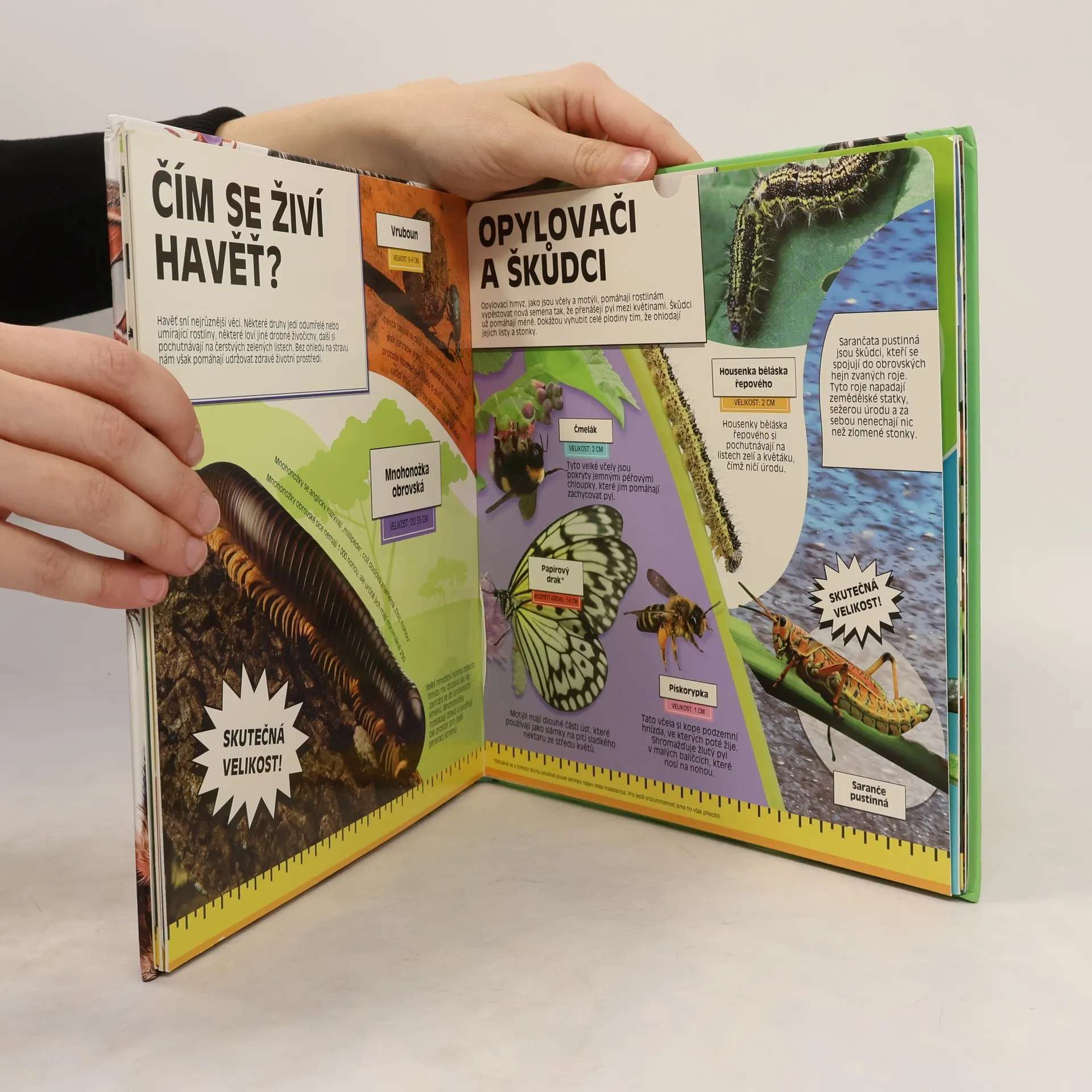Jak velký je obrovský africký hlemýžď oblovka žravá? Odkud dostala žížala hnojní své jméno? Kolik očí vlastně mají pavouci? Zjistěte odpovědi na tyto otázky na velkých rozkládacích stranách plných faktů. Havěť si navíc můžete prohlédnout v životní velikosti. Ale dávejte si pozor! Je to svět, kde se hmyz požírá navzájem…