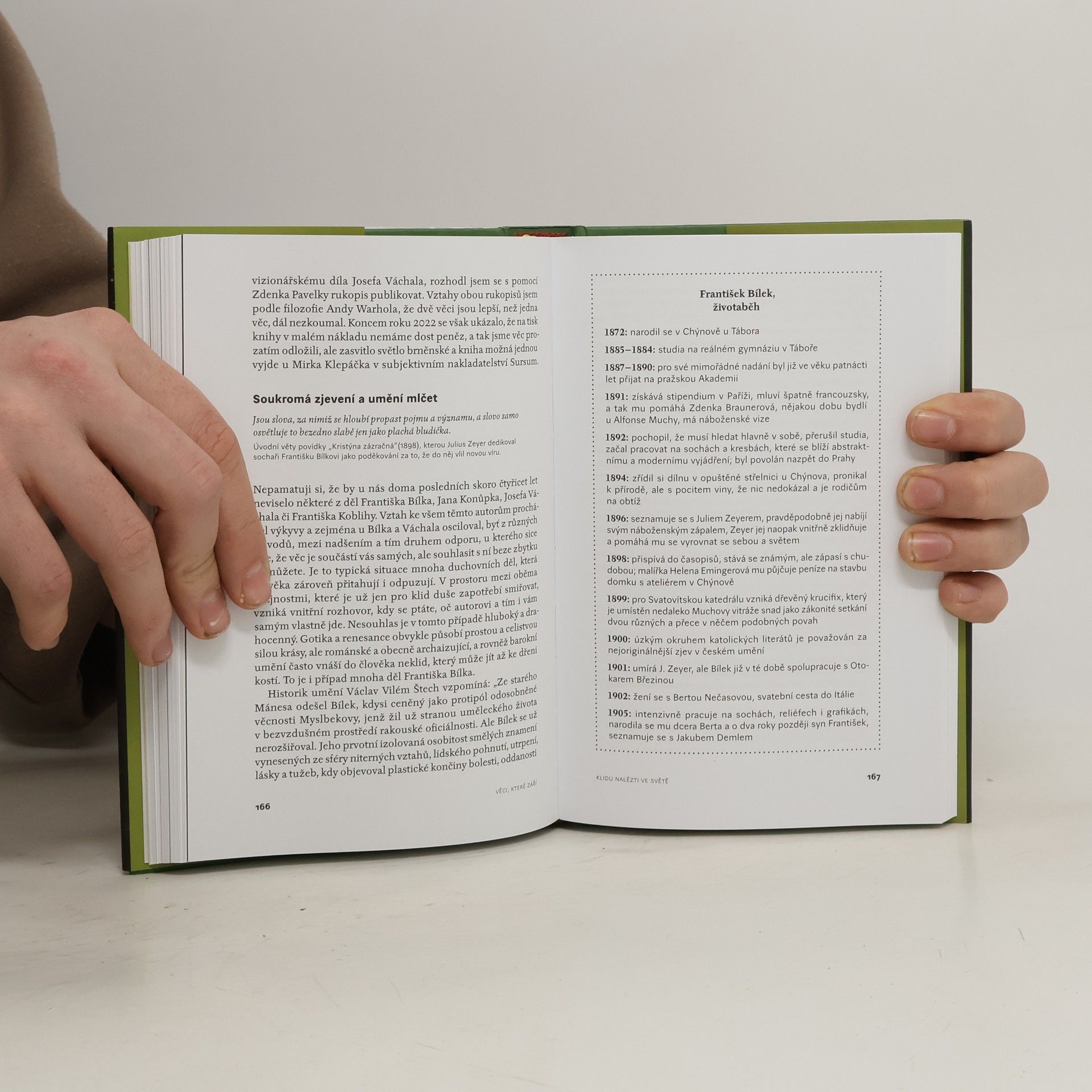 Nejnovější kniha esejů Václava Cílka vznikala neplánovaně během covidových let. Hlavním impulsem byla Cílkova spolupráce se současným slovenským undergroundovým fotografem a sběratelem umění Ivanem Zubaľem, jenž ho seznámil s okruhem slovenských výtvarníků v čele s Erikem Binderem. Podobně smýšlející lidé a věci se přitahují, a tak se na tyto výpravy do uměleckého prostředí začaly přirozeně nabalovat další osobnosti a současné i dávné příběhy – Petr Nikl a jeho spiritismus, výstřední František Skála, magický František Bílek či vizionář Alfons Mucha. Nejedná se však o kunsthistorické výklady, Cílek vnímá umění jako další, na logiku navazující cestu k porozumění světu.