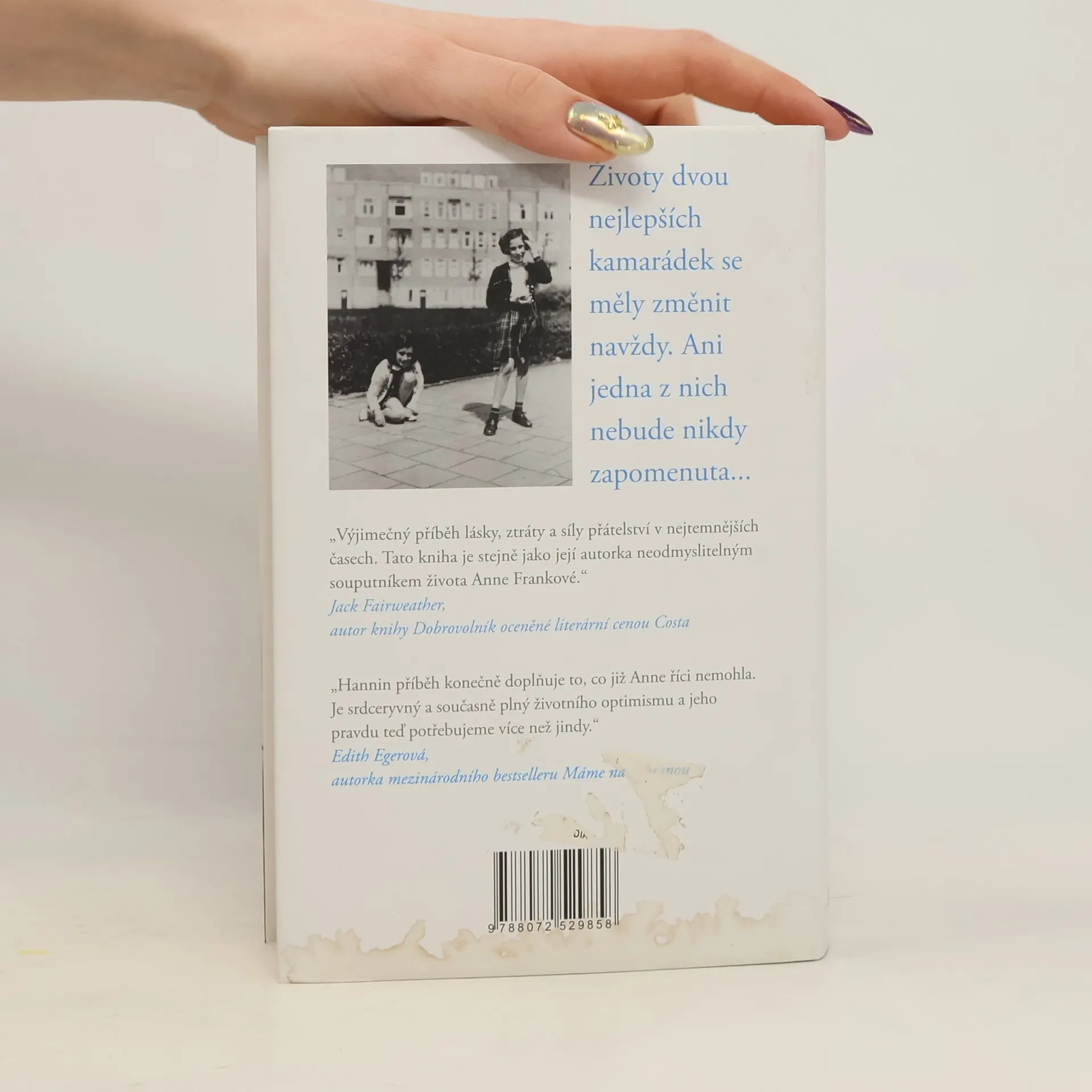 V roce 1933 pětiletá Hannah uprchla se svou rodinou z nacistického Německa do Amsterodamu, kde brzy navázala přátelství se sobě podobnou dívkou: předčasně vyspělou, otevřenou a veselou holčičkou jménem Anne Franková. Na několik nádherných let se z nich staly nerozlučné kamarádky, které si užívaly bezstarostné dětské hry, radosti a vzájemné návštěvy ve své čtvrti Rivierenbuurt. V červnu 1942, když zesílila nacistická okupace Evropy, byly náhle od sebe bez varování odtrženy. Anne a její rodina zmizely zdánlivě beze stopy a zůstalo po nich neumyté nádobí ve dřezu a neustlané postele. Ve chvíli, kdy si Hannah lámala hlavu s tím, co se s její kamarádkou stalo, a doufala, že je Anne v pořádku, začal se rozvíjet osud její vlastní rodiny: všichni byli odvezeni do internačního tábora Westerbork, odkud byli Hannah, její otec, její mladší sestra Gabi a její prarodiče přemístěni do koncentračního tábora Bergen-Belsenu. V hrozivých podmínkách, obklopena smrtí, se Hannah dozvěděla o své kamarádce překvapivé informace. V zoufalé snaze zachránit Anne, která byla slabá a bojovala o přežití, riskovala Hannah svůj život. Hannin příběh přežití navzdory všemu je svědectvím o trvalé síle přátelství, lásky a paměti.