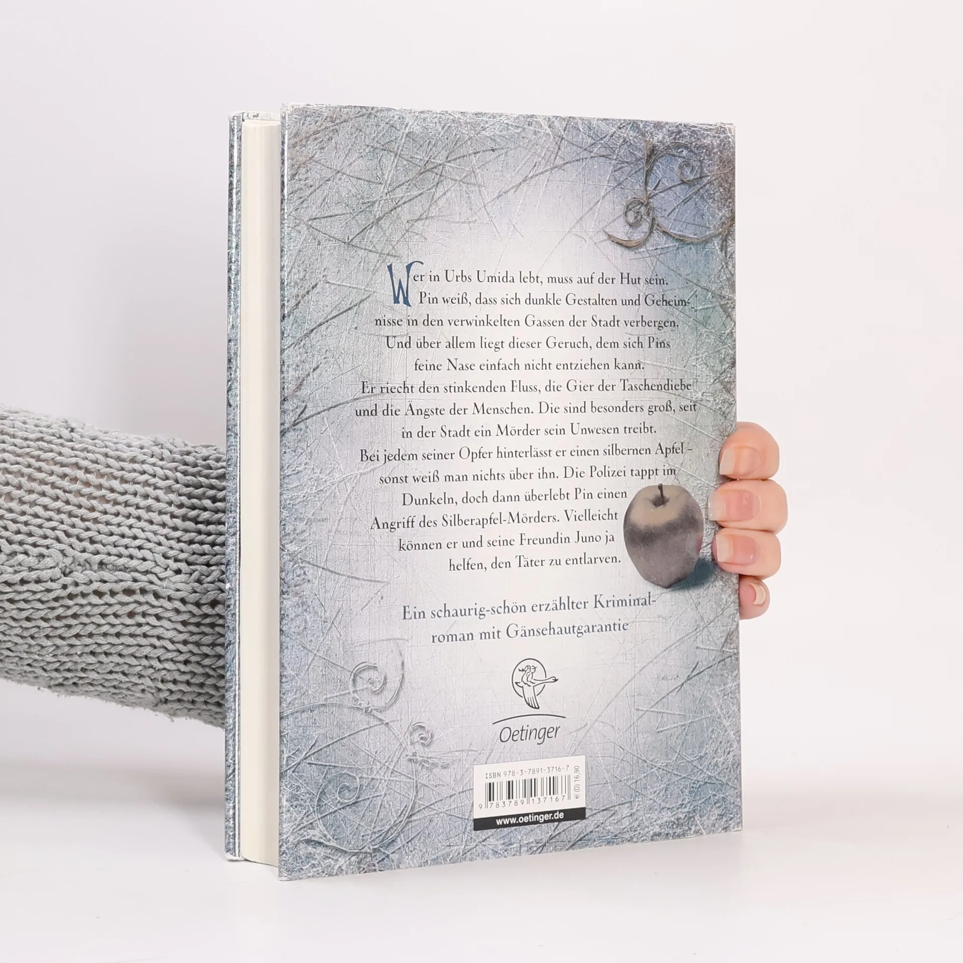 Nichts für schwache Nerven: das Rätsel um den Silberapfelmörder Pin lebt gefährlich. In den verwinkelten Gassen von Urbs Umida wimmelt es von Dieben, Betrügern und Scharlatanen, und es geht Angst um, seit ein Mörder sein Unwesen treibt. Er hinterlässt bei jedem seiner Opfer einen silbernen Apfel, sonst weiß man nichts von ihm. Seltsam ist auch die Gruppe von Schaustellern, die Pin kennenlernt. Einer von ihnen behauptet, Tote zum Leben erwecken zu können. Gemeinsam mit seiner Freundin Juno versucht Pin, seinem Trick auf den Grund zu kommen. Da schlägt der Silberapfelmörder wieder zu – und diesmal wäre fast Pin das Opfer geworden … Ein schaurig-schöner Kriminalroman im Dickens-Stil, sprachlich brillant, atmosphärisch dicht. Für Jugendliche und Erwachsene.