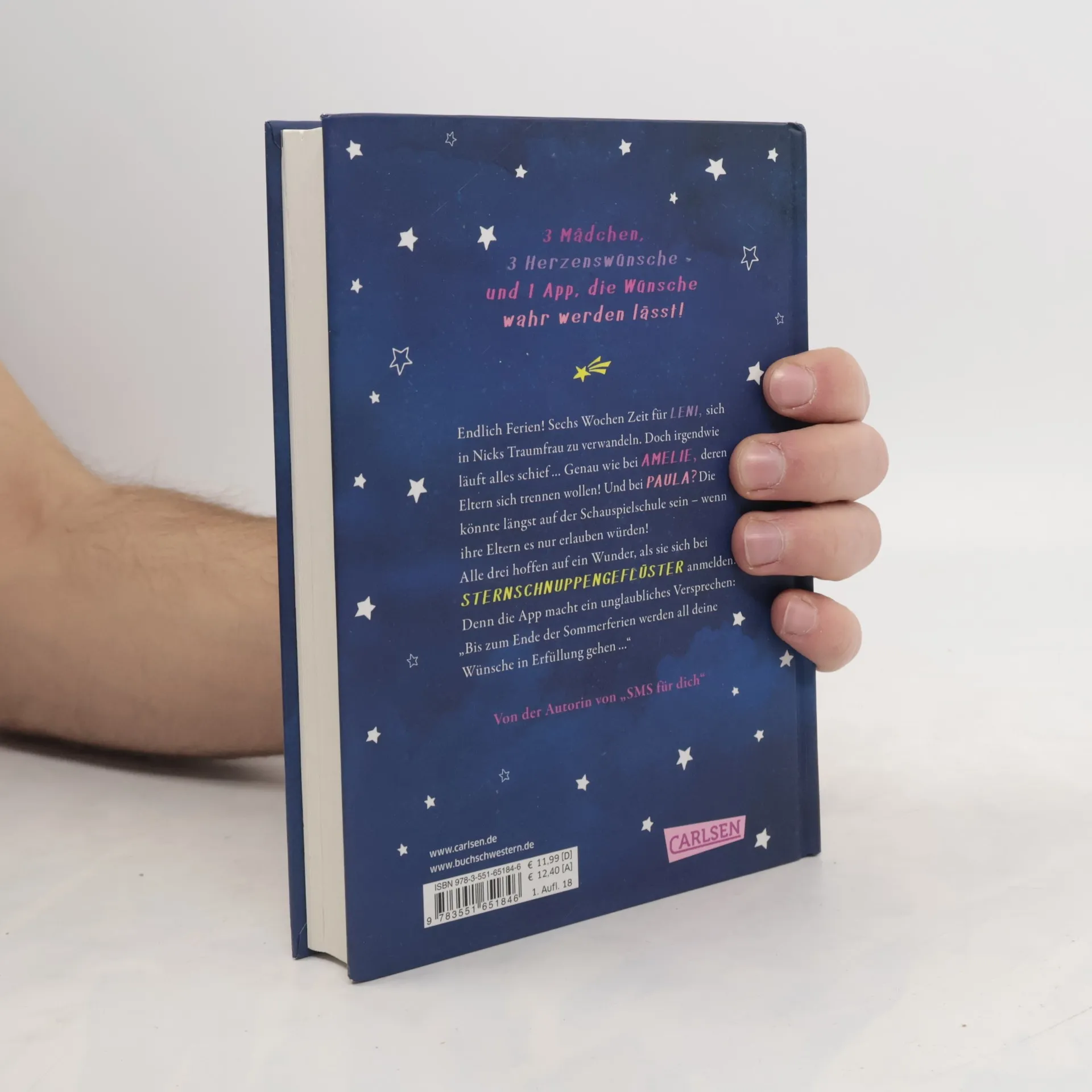 3 Mädchen, 3 Herzenswünsche und 1 App, die Wünsche wahr werden lässt! *** STERNSCHNUPPENGEFLÜSTER: Endlich Ferien! Sechs Wochen Zeit für LENI, sich in Nicks Traumfrau zu verwandeln. Doch irgendwie läuft alles schief ... Genau wie bei AMELIE, deren Eltern sich trennen wollen! Und PAULA? Die könnte längst auf der Schauspielschule sein – wenn ihre Eltern es nur erlauben würden! Alle drei hoffen auf ein Wunder, als sie sich bei STERNSCHNUPPENGEFLÜSTER anmelden. Denn die App macht ein unglaubliches Versprechen: „Bis zum Ende der Sommerferien werden all deine Wünsche in Erfüllung gehen ...“ *** Das Jugendbuch-Debüt der Bestseller-Autorin („SMS für dich“)! *** Eine turbulente Liebes- und Freundschaftsgeschichte mit drei starken Heldinnen: das perfekte Buch für Sommernächte! ***