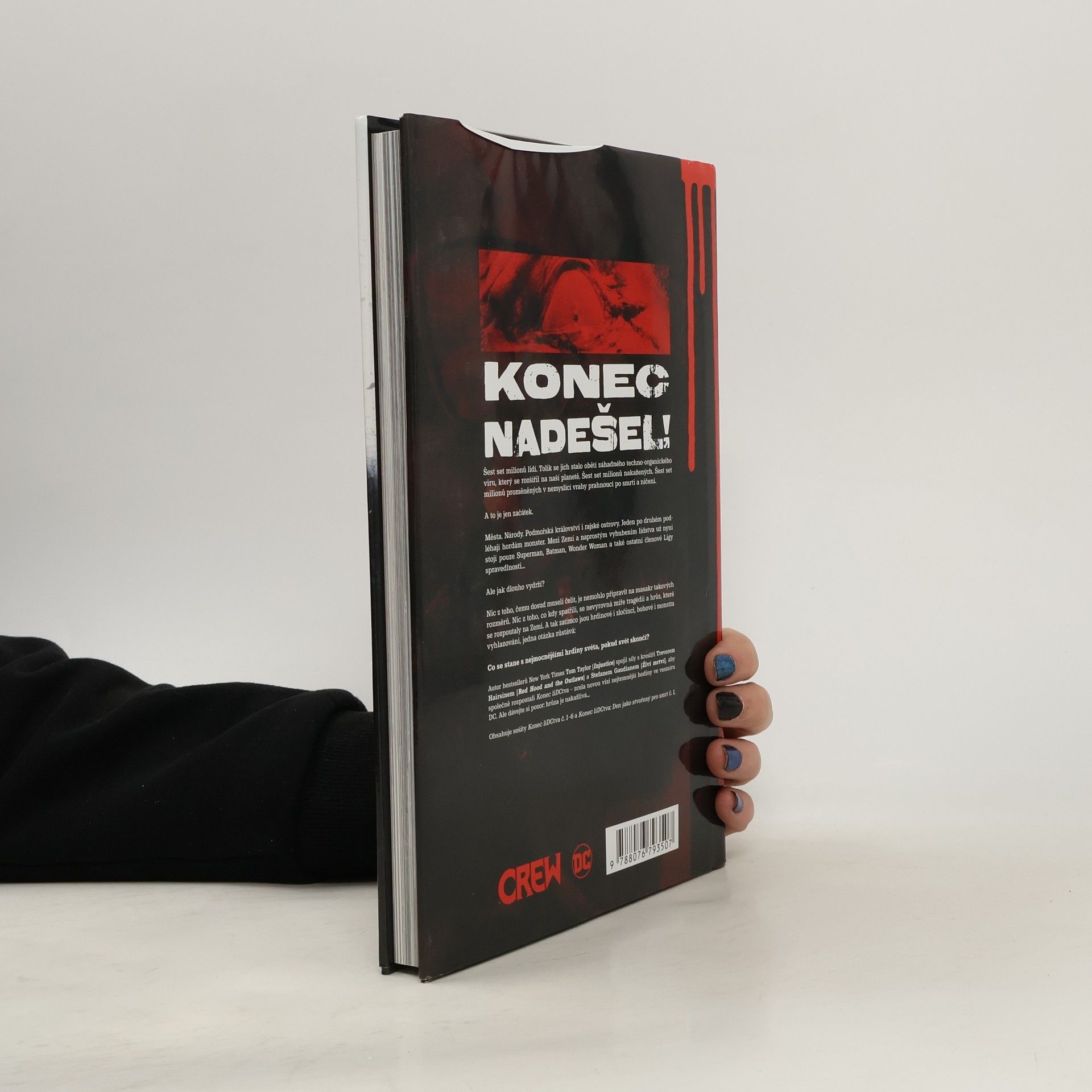 KONEC NADEŠEL! Šest set milionů lidí. Tolik se jich stalo obětí záhadného techno-organického viru, který se rozšířil na naší planetě. Šest set milionů nakažených. Šest set milionů proměněných v nemyslící vrahy prahnoucí po smrti a ničení.A to je jen začátek.Města. Národy. Podmořská království i rajské ostrovy. Jeden po druhém podléhají hordám monster. Mezi Zemí a naprostým vyhubením lidstva už nyní stojí pouze Superman, Batman, Wonder Woman a také ostatní členové Ligy spravedlnosti...Ale jak dlouho vydrží?Nic z toho, čemu dosud museli čelit, je nemohlo připravit na masakr takových rozměrů. Nic z toho, co kdy spatřili, se nevyrovná míře tragédií a hrůz, které se rozpoutaly na Zemi. A tak zatímco jsou hrdinové i zločinci, bohové i monstra vyhlazováni, jedna otázka zůstává:Co se stane s nejmocnějšími hrdiny světa, pokud svět skončí?Autor bestsellerů New York Times Tom Taylor (Injustice) spojil síly s kreslíři Trevorem Hairsinem (Red Hood and the Outlaws) a Stefanem Gaudianem (Živí mrtví), aby společně rozpoutali Konec liDCtva – zcela novou vizi nejtemnější hodiny ve vesmíru DC. Ale dávejte si pozor: hrůza je nakažlivá...Obsahuje sešity Konec liDCtva č. 1–6 a Konec liDCtva: Den jako stvořený pro smrt č. 1.