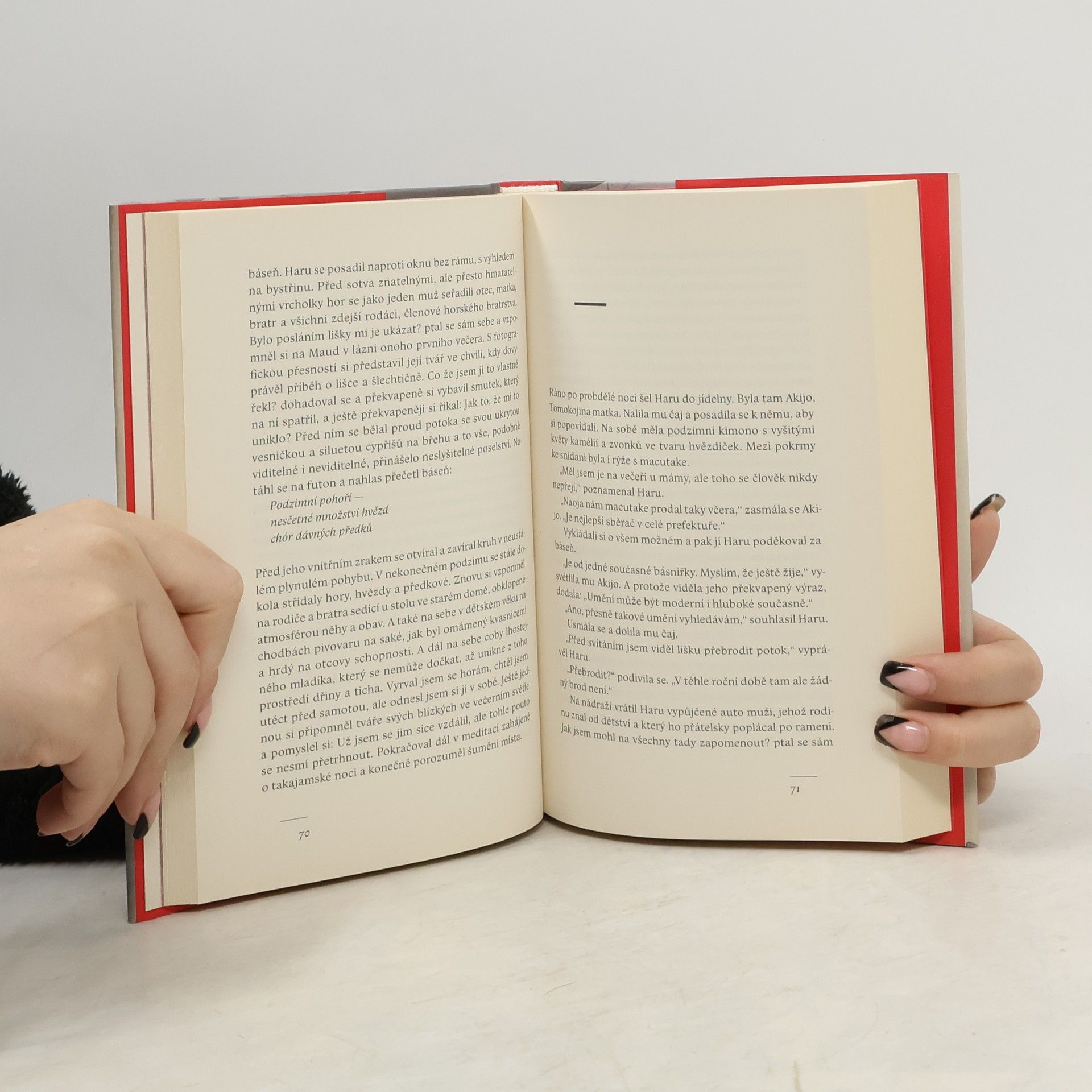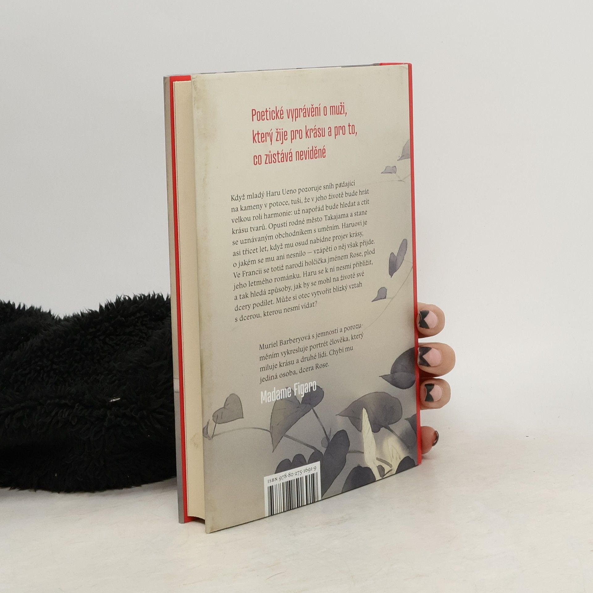 Poetické vyprávění o muži, který žije pro krásu a pro to, co zůstává neviděné. Když mladý Haru Ueno pozoruje sníh padající na kameny v potoce, tuší, že v jeho životě bude hrát velkou roli harmonie: už napořád bude hledat a ctít krásu tvarů. Opustí rodné město Takajama a stane se uznávaným obchodníkem s uměním. V Kjótu si postaví dům s javorem rostoucím ve skleněném atriu v hlavní obytné místnosti, kam se vrací po četných večírcích s přáteli z umělecké branže. Haruovi je asi třicet let, když mu osud nabídne nejkrásnější projev krásy, o jakém se mu ani nesnilo. Vzápětí však o něj přijde. Ve Francii totiž přijde na svět malá holčička jménem Rose, plod jeho letmého románku. Haru se k ní nesmí přiblížit, a tak hledá způsoby, jak by se mohl na životě své dcery i nadále podílet. Může si otec vytvořit blízký vztah s dcerou, kterou nesmí vídat? Muriel Barberyová čtenáře opět zavádí mezi japonské chrámy a zahrady a jedinečným stylem postihuje témata, která se týkají nás všech.