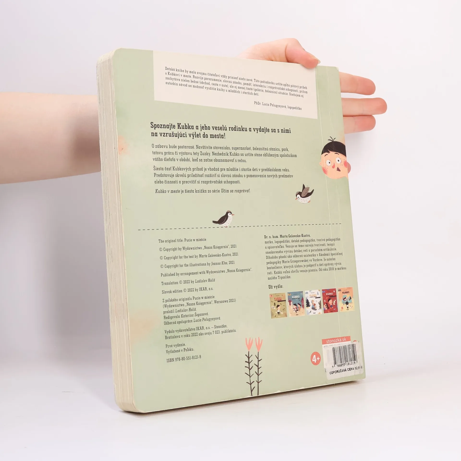 Šiesta časť Kubkových príhod je vhodná pre mladšie i staršie deti v predškolskom veku. S Kubkom a jeho rodinou navštívite stavenisko, supermarket, železničnú stanicu, park, tatovu prácu či výstavu tety Zuzky. Vďaka knižke si deti rozšíria slovnú zásobu o pomenovania nových predmetov alebo činností a precvičia si rozprávačské schopnosti