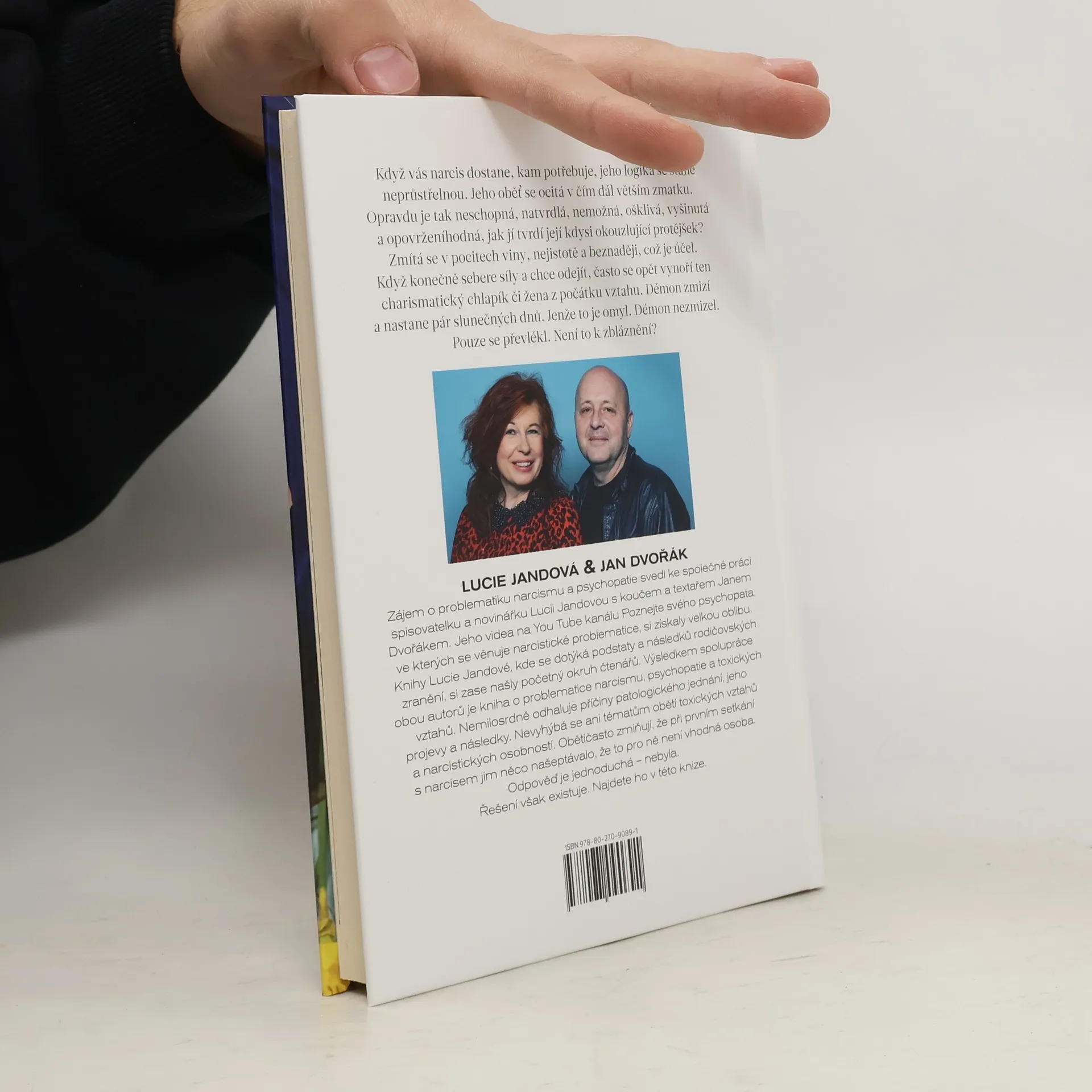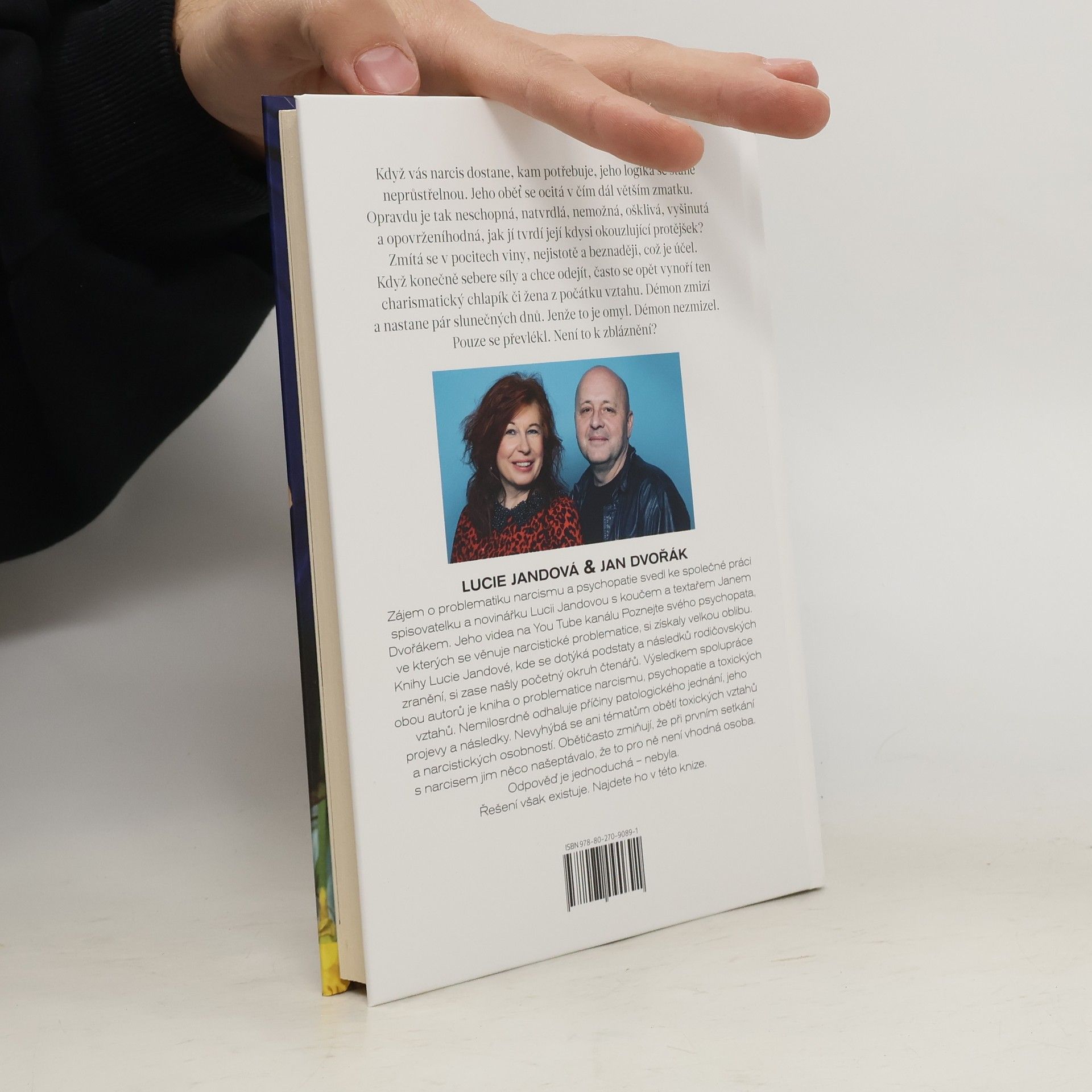 Když vás narcis dostane, jeho logika se stává neprůstřelnou a oběť se ocitá v chaosu. Zpochybňuje své schopnosti a vzhled, což je účel manipulace. Když se rozhodne odejít, často se objeví charismatický partner, což je klam. Démon nezmizel, jen se převlékl. Zájem o narcismus a psychopatii spojil spisovatelku a novinářku Lucii Jandovou s koučem a textařem Janem Dvořákem. Jeho videa na YouTube kanálu Poznejte svého psychopata se stala populárními. Jandová se ve svých knihách zaměřuje na důsledky rodičovských zranění a její práce si našla široké publikum. Společně vytvořili dílo, které se zabývá narcisismem, psychopatií a toxickými vztahy. Proč jich přibývá? Odpověď může být v naší době. Kniha odhaluje příčiny patologického chování, jeho projevy a následky, a také se věnuje obětem těchto vztahů. Autoři se ptají, proč oběti nerozpoznají manipulace narcisů, přičemž mnohé z nich při prvním setkání cítily varovné signály. Odpověď je jednoduchá – nebyly si vědomy nebezpečí. Řešení však existuje a je obsaženo v této knize.