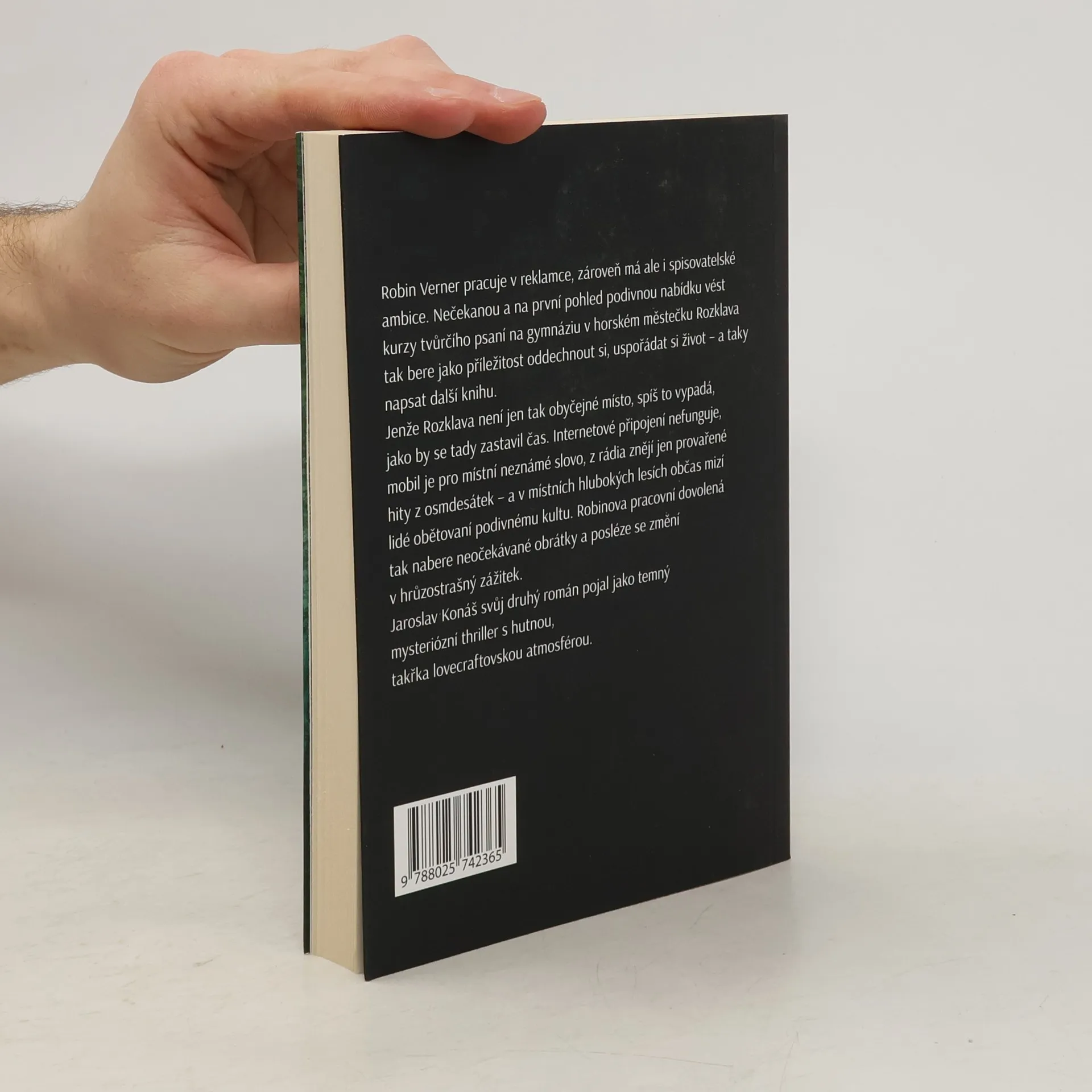 Robin Verner pracuje v reklamce, zároveň má ale i spisovatelské ambice. Nečekanou a na první pohled podivnou nabídku vést kurzy tvůrčího psaní na gymnáziu v horském městečku Rozklava tak bere jako příležitost oddechnout si, uspořádat si život – a taky napsat další knihu. Jenže Rozklava není jen tak nějaké obyčejné místo, spíš to vypadá, jako by se tady zastavil čas. Internetové připojení nefunguje, mobil je pro místní neznámé slovo, z rádia znějí jen provařené hity z osmdesátek – a v místních hlubokých lesích občas mizí lidé obětovaní podivnému kultu. Robinova pracovní dovolená tak nabere neočekávané obrátky a posléze se změní v hrůzostrašný zážitek. Temný mysteriózní thriller s hutnou, takřka lovecraftovskou atmosférou.