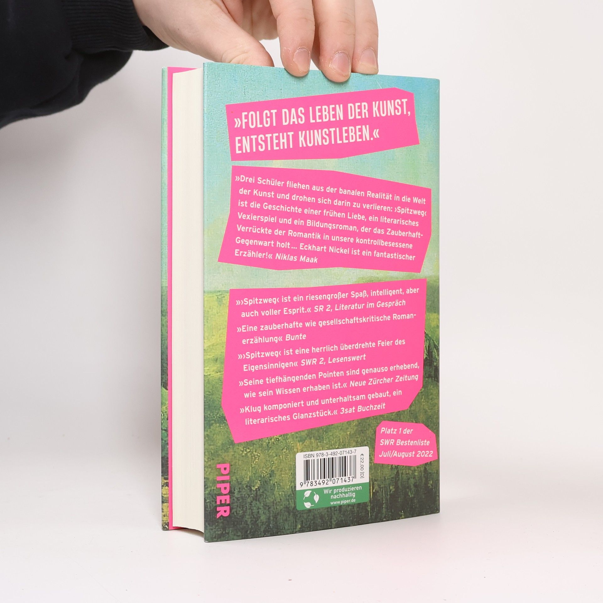 Ein Kunstdiebstahl aus Liebe - Nominiert für den Deutschen Buchpreis 2022 | Shortlist »Ich habe mir nie viel aus Kunst gemacht.« Als zufriedener Kunstbanause offenbart sich der Erzähler zu Beginn und berichtet davon, wie Carl, bewunderter Freund, ihn mit seiner Spitzweg-Begeisterung vom Gegenteil überzeugt. In der Mitte des Geschehens: eine Dreiecksbeziehung, ein hochbegabtes Mädchen und der verräterische Diebstahl eines Gemäldes. Durch raffinierte Rachepläne wird die Schülerfreundschaft auf ihre schwerste Probe gestellt. Eckhart Nickel erzählt wie in »Hysteria« die Geschichte einer Obsession: War darin von der Natur nur noch künstliche Reproduktion übrig, wird nun die Kunst zur zweiten Natur des Menschen. Eine raffinierte Kritik an der Bildvergötterung der sozial verwahrlosten Digitalgesellschaft und ihrer allmächtigen Instagrammatik. »Drei Schüler fliehen aus der banalen Realität in die Welt der Kunst und drohen sich darin zu verlieren: ›Spitzweg‹ ist die Geschichte einer frühen Liebe, ein literarisches Vexierspiel und ein Bildungsroman, der das Zauberhaft-Verrückte der Romantik in unsere kontrollbesessene Gegenwart holt ... Eckhart Nickel ist ein fantastischer Erzähler! « Niklas Maak