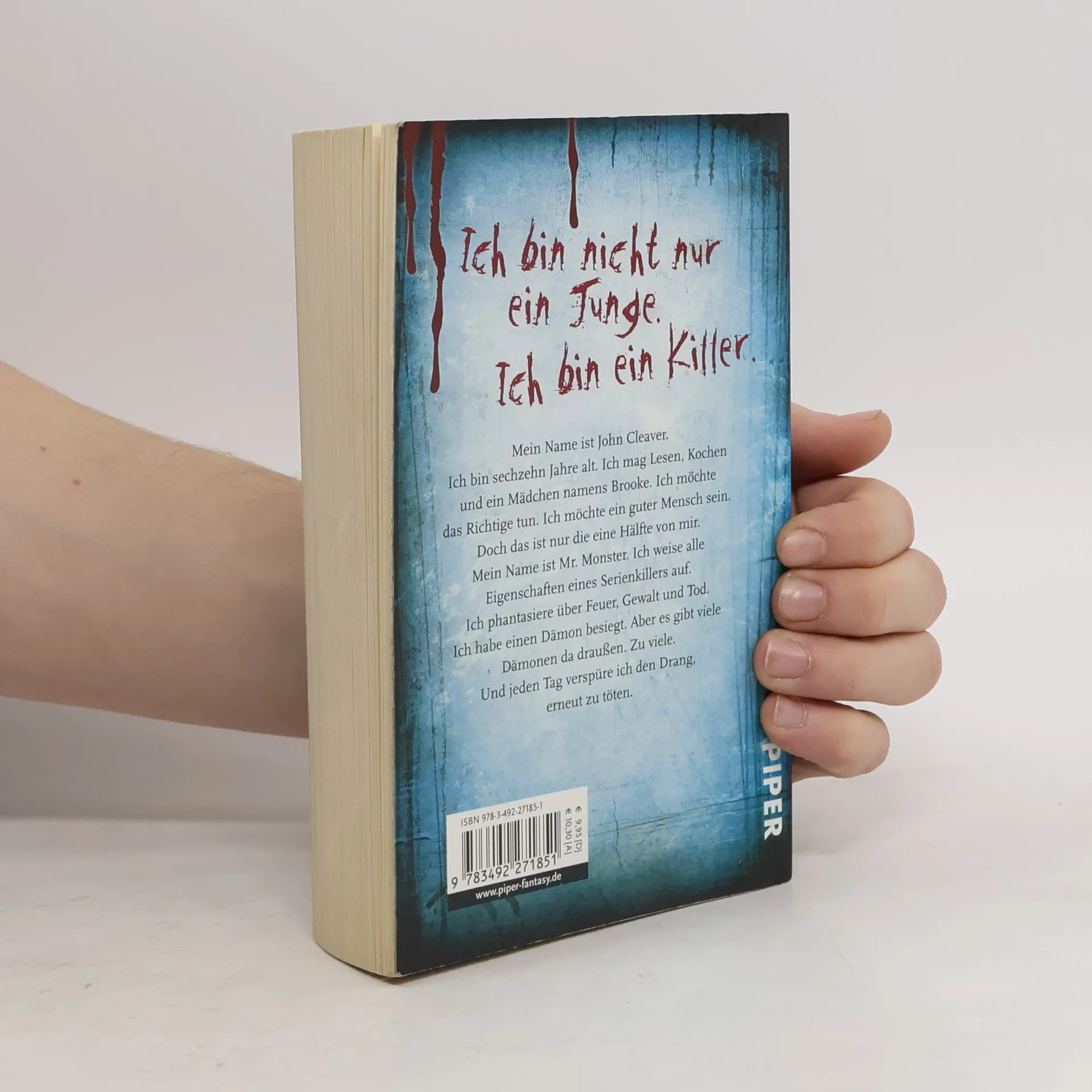 Mein Name ist John Cleaver. Ich bin 16 Jahre alt. Ich mag Lesen, Kochen und ein Mädchen namens Brooke. Ich möchte das Richtige tun. Ich möchte ein guter Mensch sein. Doch das ist nur die eine Hälfte von mir. Mein Name ist Mr. Monster. Ich weise alle Eigenschaften eines Serienkillers auf. Ich phantasiere über Feuer, Gewalt und Tod. Ich habe einen Dämon besiegt. Aber es gibt viele Dämonen da draußen. Zu viele. Und jeden Tag verspüre ich den Drang, erneut zu töten.