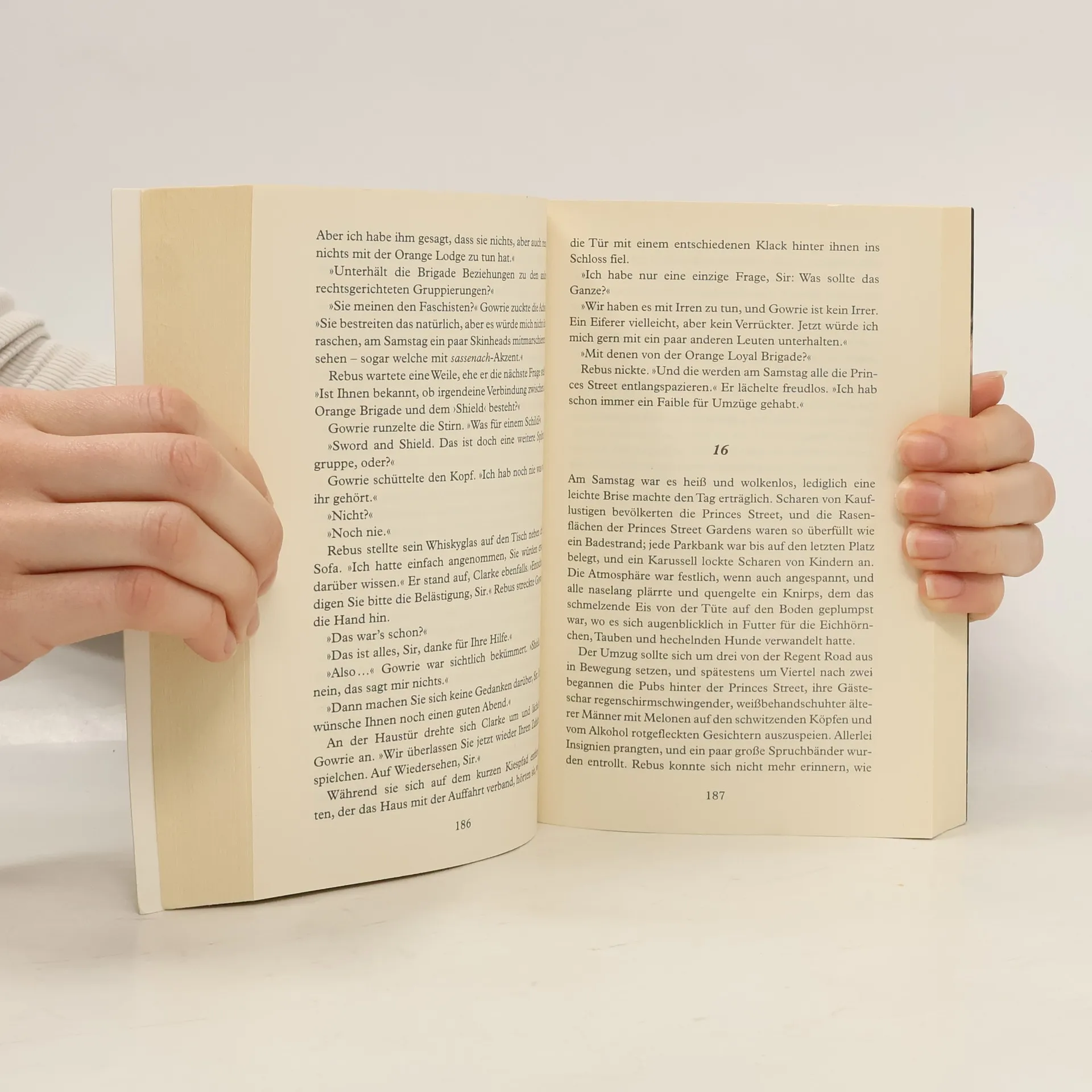 Während oben in Edinburgh das Fringe-Festival tobt, wird in den labyrinthischen Gewölben von Mary King’s Close ein Mann mit sechs Kugeln ermordet. Ein in Terroristenmanier verübter Mord, was Inspector Rebus intuitiv aber für die falsche Erklärung hält. Unter Hochdruck fahndet er nach dem Täter, um dessen Leben zu retten – denn der Ermordete ist der Sohn von Unterweltboss ‚Big Ger’ Cafferty. Und ‚Big Ger’ hat bereits blutige Rache geschworen …