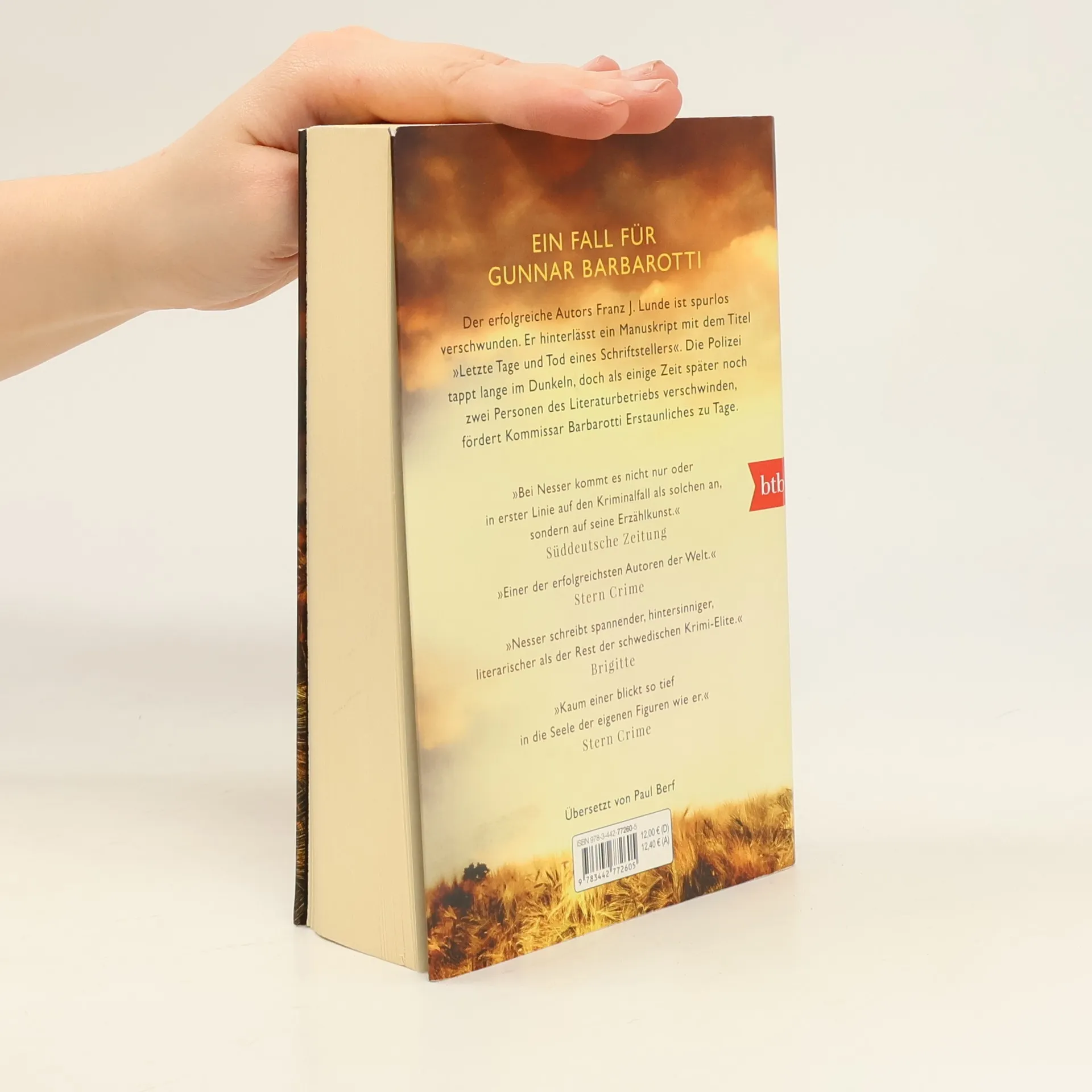 Die Leser des erfolgreichen Autors Franz J. Lunde sind sich sicher: Wer einen Mord so schildert, muss ihn selbst begangen haben. Lunde, der an einem Manuskript mit dem Titel »Letzte Tage und Tod eines Schriftstellers« arbeitet, fühlt sich von seinem Publikum bedroht. Nach einer Lesung in Kymlinge ist er plötzlich spurlos verschwunden. Kurze Zeit später wird die bekannte Lyrikerin Maria Green vermisst. Auch sie hinterlässt ein rätselhaftes Schriftfragment. Die Polizei tappt im Dunklen, bis ein halbes Jahr später der Autor und Literaturkritiker Jack Walde unauffindbar ist. Was verband diese drei Schriftsteller? Was ist ihnen zugestoßen? Kommissar Barbarotti fördert trotz erschwerter Bedingungen Erstaunliches zu Tage.