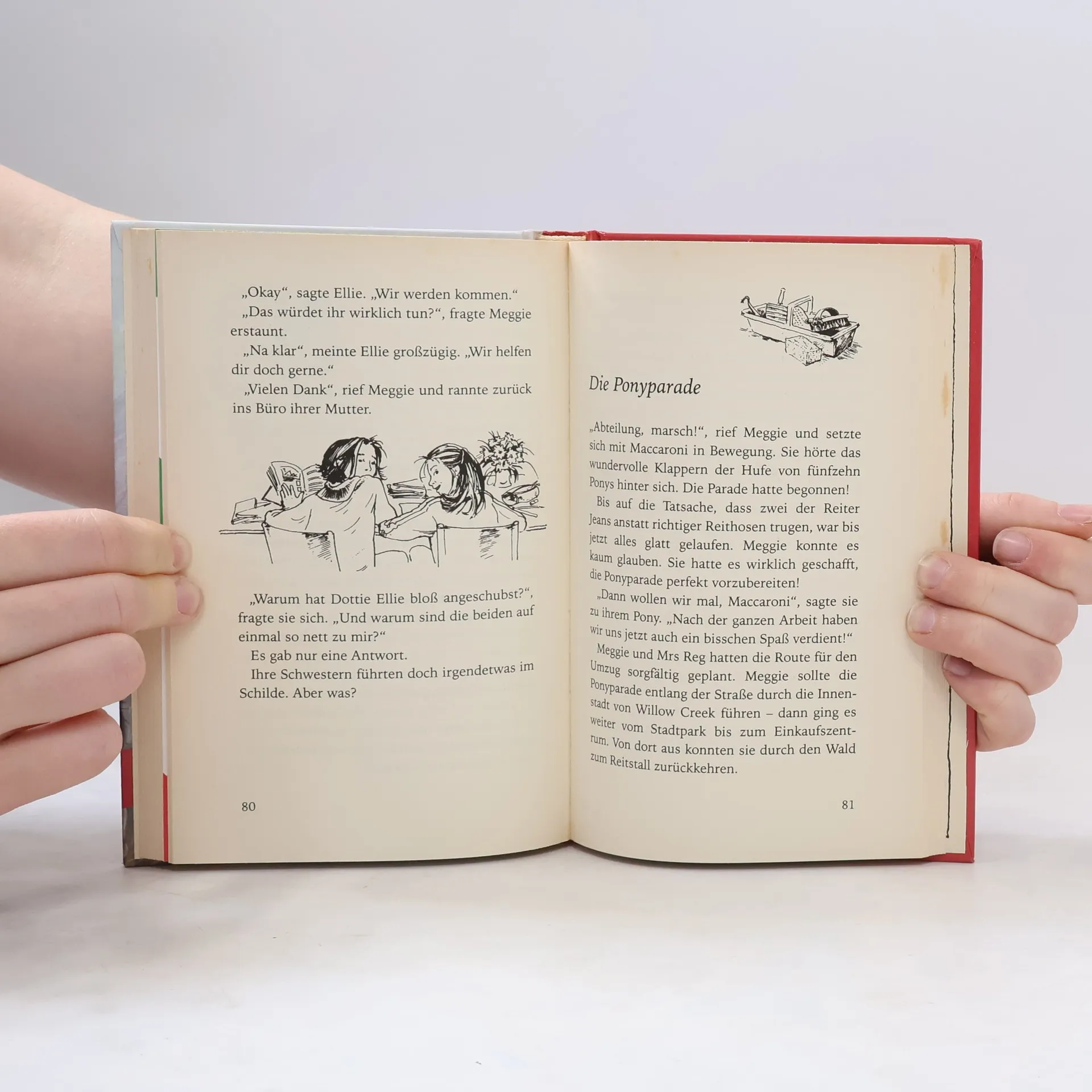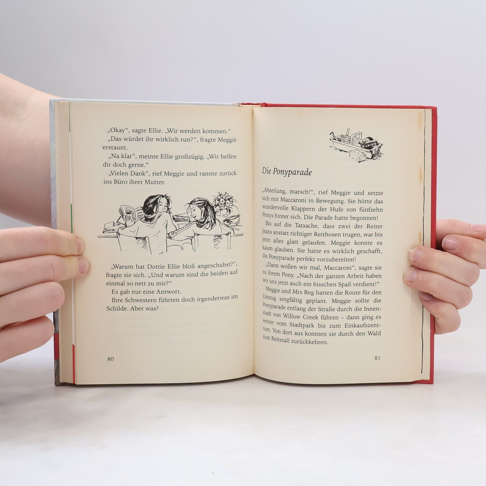 Meggie, Conny und Jasmin müssen sich schleunigst etwas überlegen. Die Karten für die große Pony-Show verkaufen sich furchtbar schlecht. Dabei sollen sie doch möglichst viel Geld einbringen, weil der Erlös dem Tierschutzverein gespendet wird! Wie immer hat Meggie im letzten Moment die rettende Idee. Aber warum verhalten sich Conny und Jasmin plötzlich so seltsam? Was haben die beiden ständig hinter Meggies Rücken zu tuscheln?