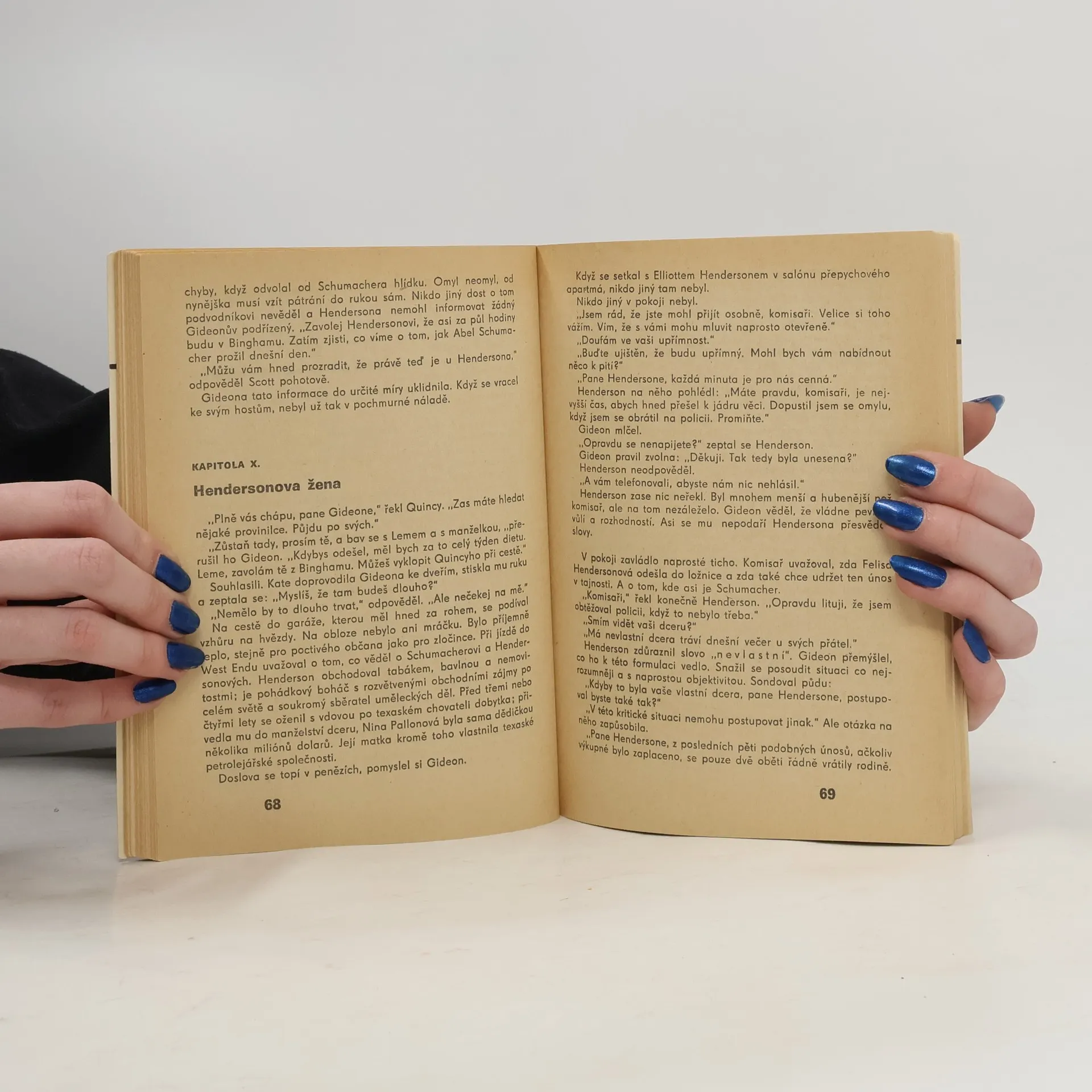 11. kniha série Komisař Gideon. Sexuální vraždy, únosy a vydírání, padělání peněz, loupeže v klenotnictví, to jsou případy tohoto jakéhosi simultánního detektivního románu z londýnského prostředí, ve kterém komisař Gideon musí řešit vždy několik kriminálních činů současně. Jde o neobvyklý typ detektivního románu, rozbíhajícího se do šíře (někdy nad schopnost čtenářovy orientace) avšak dávající čtenáři reálnou představu, jak se pátrání na jednom případu nevyhnutelně prolíná s pátráním na případech jiných. Jeden ze seriálu příběhů o komisaři Gideonovi, které autor podepisuje jedním ze svých 25 pseudonymů – J.J. Marric. Edice Kobra, svazek 16. 1. vydání.