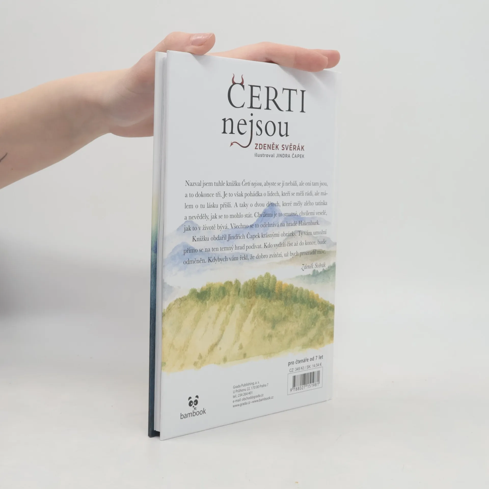 Nazval jsem tuhle knížku Čerti nejsou, abyste se jí nebáli, ale oni tam jsou, a to dokonce tři. Je to však pohádka o lidech, kteří se měli rádi a málem o tu lásku přišli. A taky o dvou dětech, které měly zlého tatínka a nevěděly, jak se to mohlo stát. Chvílemi je to smutné, chvílemi veselé, jak to v životě bývá. Všechno se to odehrává na hradě Hakenburk. Knížku obdařil Jindřich Čapek krásnými obrázky. Ty vám umožní přímo se na ten temný hrad podívat. Kdo vydrží číst až do konce, bude odměněn. Kdybych vám řekl, že dobro zvítězí, už bych prozradil moc. Zdeněk Svěrák