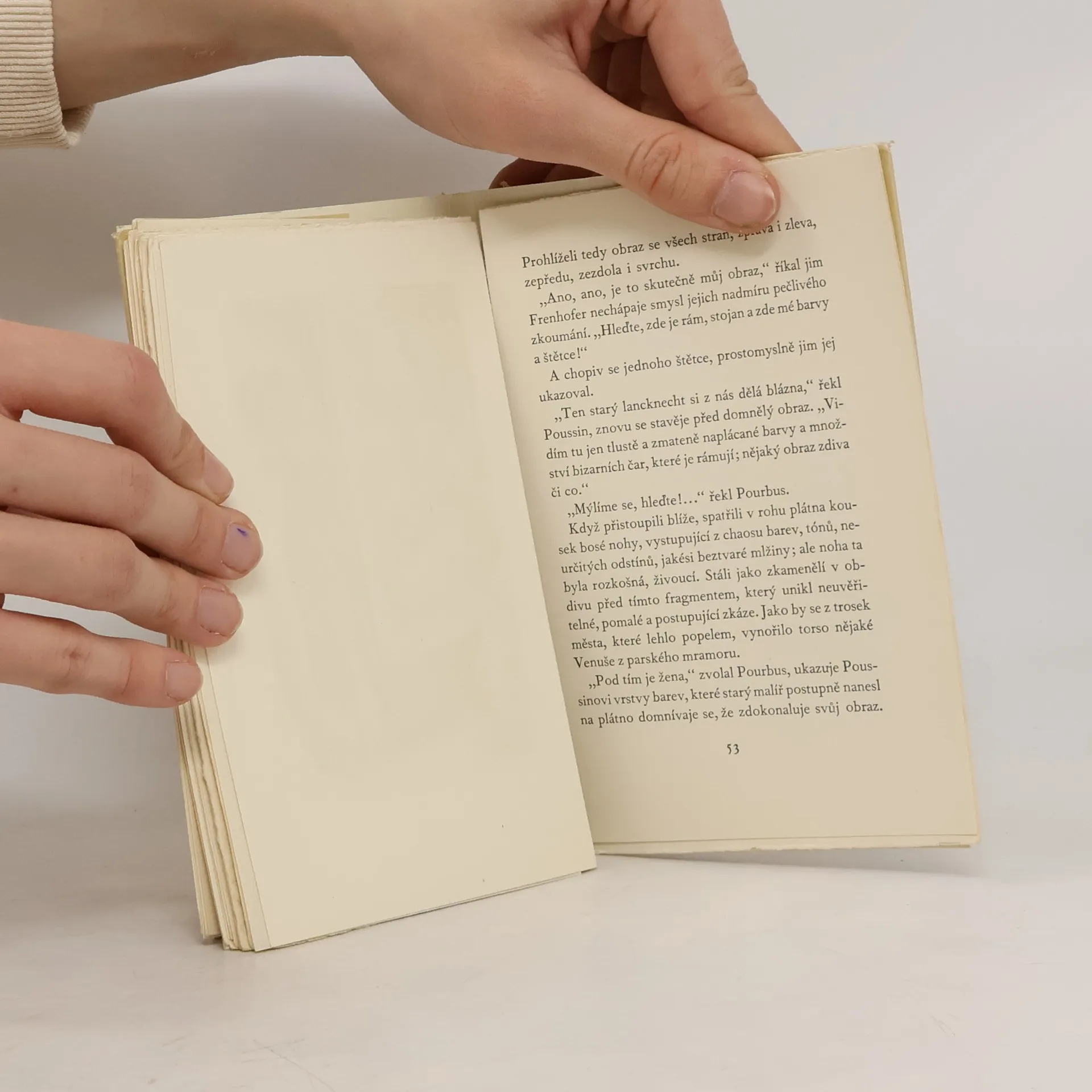Fiktivní episoda z mladosti Poussinovy: budoucí slavný malíř pozná záhadného staříka-umělce Frenhofera, žáka Mabuseova, který nejen že dovede několika tahy štětce dát obrazu světlo, prostor, plastičnost, ale i romanticky o umění theoretisuje a především po léta pracuje na obraze Krásnéhašteřilky. Nikdo toto neznámé arcidílo neviděl, a když je konečně Poussin spatří, odhalí jen mnohonásobně přemalovávaný obraz s kouzelnou ženskou nožkou v rohu – den na to Frenhofer zemře, spáliv před tím všechny své obrazy. — Frenhoferovy theorie, výraz romantické estetiky kolem roku 1830, připomínají nejen Delacroixe, ale jsou již předzvěstí Cézanna, který sám byl později přesvědčen, že on je vlastně hrdinou novely, která vyšla dříve, než se narodil.