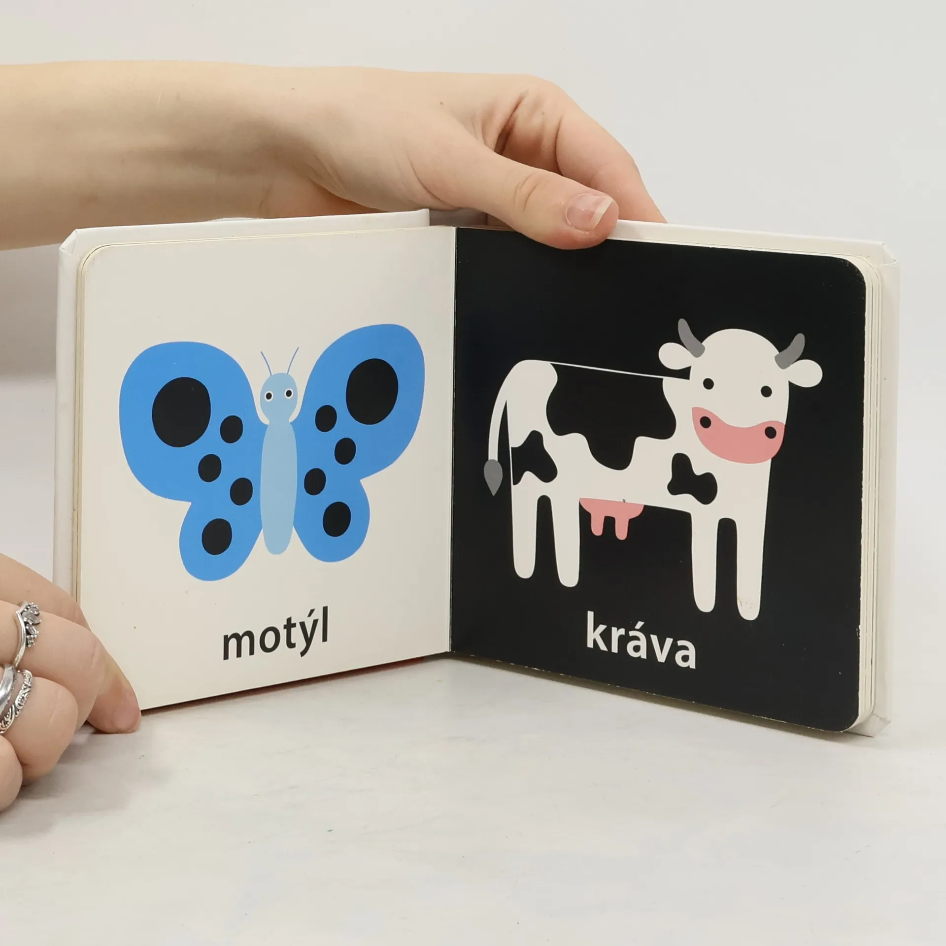 Toto malé leporelo můžete vzít všude s sebou. Velké je tak akorát do dětských ručiček a díky pevným stránkám vydrží i méně šetrné zacházení. Jednoduché obrázky zvířátek jsou uzpůsobené malému děťátku, a tak si je vaše miminko může prohlížet stále dokola. Černobílá varianta doplněná o kontrastní prvky je pro správný vývoj zraku malého miminka vhodnější než pestrobarevné obrázky. Zároveň se může učit rozlišovat jednotlivé barvy. Ukažte svému děťátku, jak má otáčet pevné stránky, a rozvíjejte tak u něj jemnou motoriku a koordinaci pohybu prstíků.