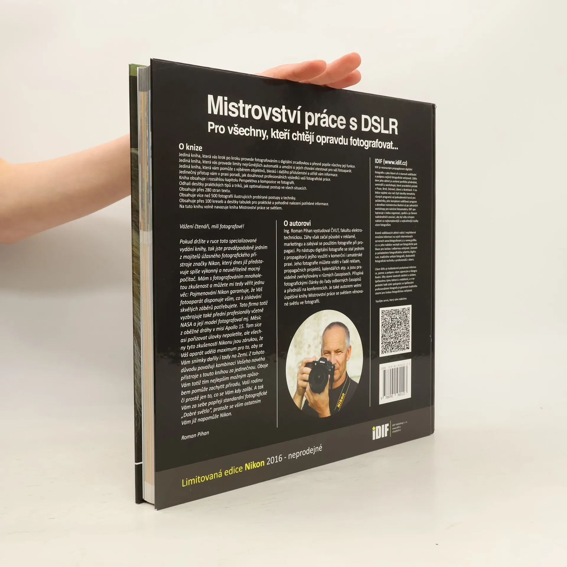 Institut digitální fotografie přichází s obsáhlou výpravnou publikací Mistrovství práce s DSLR. Kniha provede laika začátky práce s digitální zrcadlovkou, ale také uspokojí zkušeného praktika tohoto typu fotografování. Kolektiv autorů na knize pracoval mnoho měsíců. V jeho čele stál Roman Pihan, který se digitálním zrcadlovkám plně věnuje přes pět let. Mistrovství práce s DSRL obsahuje více než dvě stě stran odborného textu, přes čtyři sta fotografií, kresby, grafy a tabulky pro snadnější orientaci. Autoři se zaměřili na konkrétní problémy a přesné popisy všech funkcí digitálních fotoaparátů. Vychází z dotazů uživatelů DSLR a také se pokouší předvídat otázky, které by ještě mohly čtenáře napadnout. Poskytnou spolehlivého průvodce všemi fázemi výběru přístroje, od rozhodnutí pro určitý typ aparátu, až po pravidla nákupu. Rozeberou, jak si vybrat vhodné objektivy a další příslušenství, například blesk. Mistrovství práce s DSRL je nepostradatelnou příručkou v knihovně každého fotografa.
