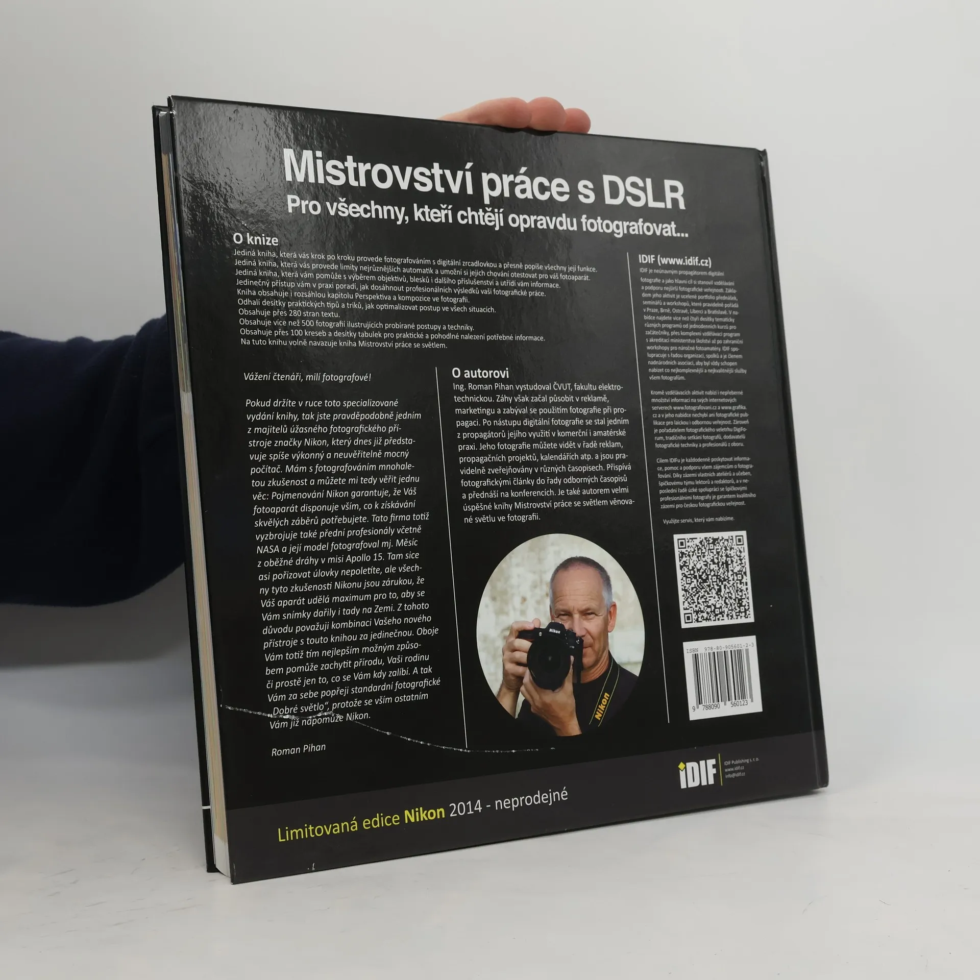 Kniha Mistrovství práce s DSLR jako první nabízí opravdu vyčerpávající odpovědi na všechny vaše otázky týkající se práce s DSLR. Jde o původní českou publikaci, na které tým lektorů IDIFu pracoval skoro rok. Autorem textu je Roman Pihan, který se problematice práce s DSLR věnuje soustavně již přes pět let. Začtěte se do této unikátní knihy a najděte odpovědi na své otázky.Kniha je napsána sice velice odborně, ale Roman Pihan tyto termíny vždy vysvětlí velice přesně, jasně a srozumitelně. Proto se člověk nemusí bát, že by něco nepochopil. Jeho jazyk je ale spíše odbornější. Sám Roman Pihan o ní mluví jako o knize, která má seznámit uživatele s provozem zrcadlovky, jejím pochopením a samozřejmě bezchybnou obsluhou. Na tuto publikaci navazuje Mistrovství práce se světlem, kde naopak rozebírá taje světla, tonalitu barev a bere na zřetel jeho zpracování.