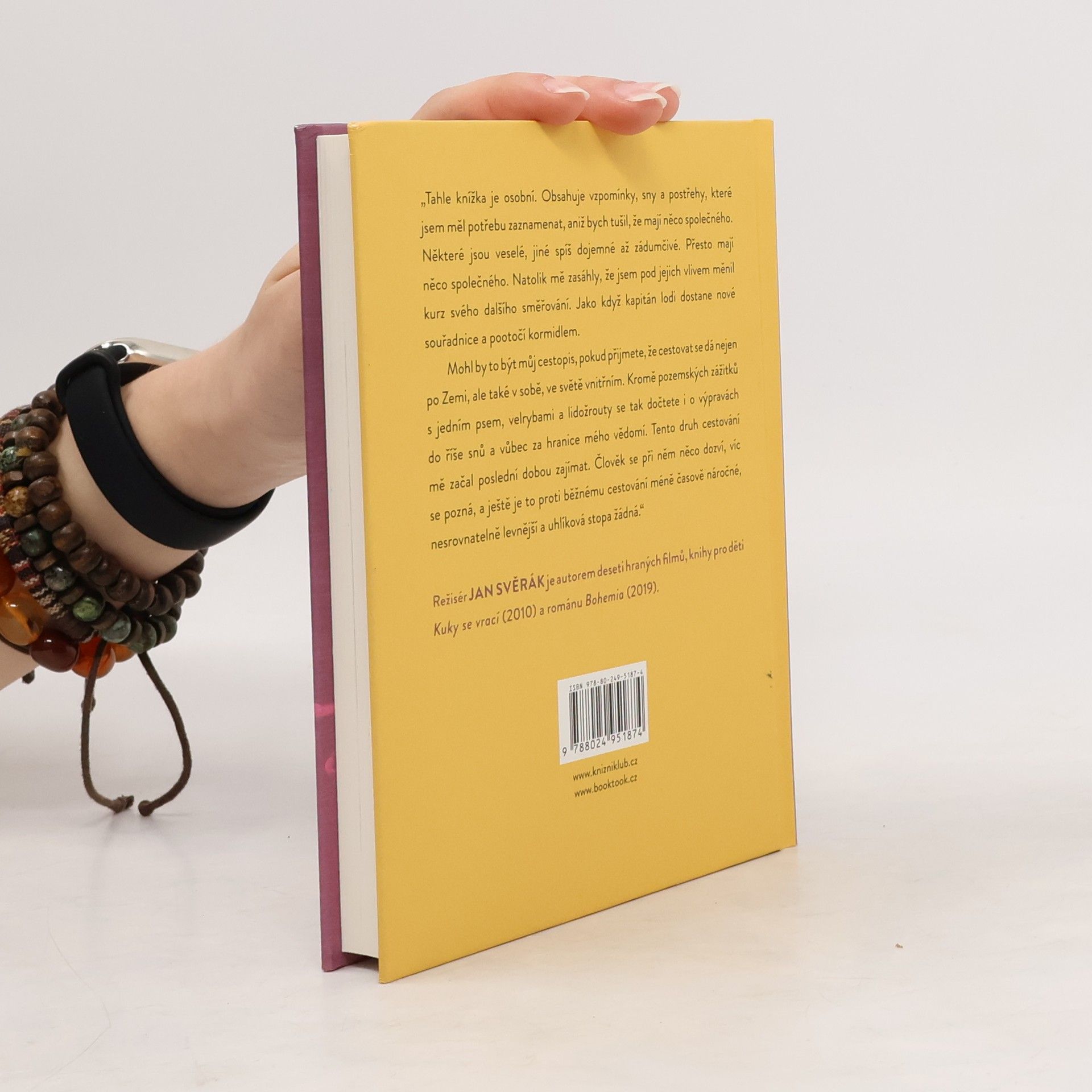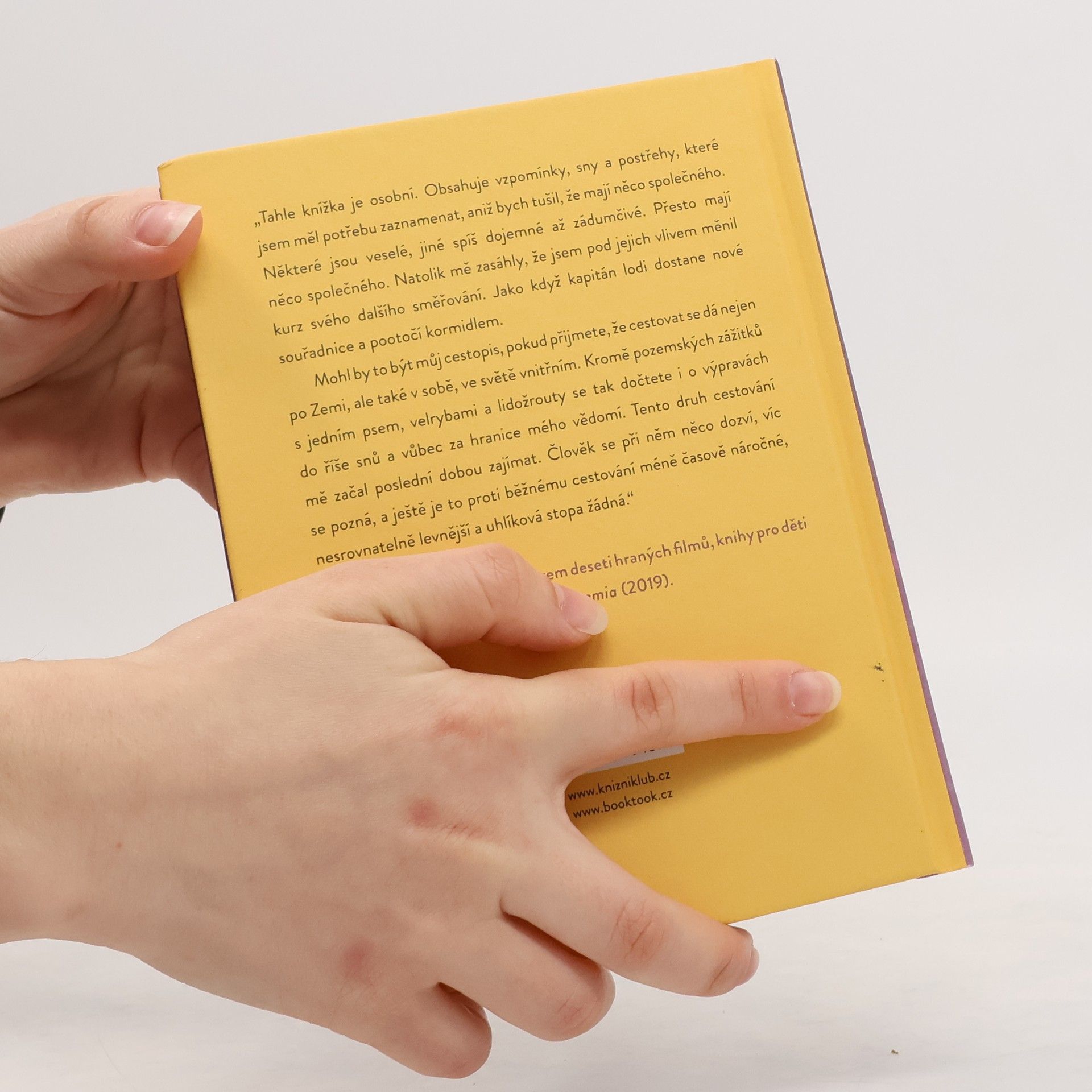 Tahle knížka je osobní. Obsahuje vzpomínky, sny a postřehy, které jsem měl potřebu zaznamenat, aniž bych tušil, že mají něco společného. Některé jsou veselé, jiné spíš dojemné až zádumčivé. Přesto mají něco společného. Natolik mě zasáhly, že jsem pod jejich vlivem měnil kurz svého dalšího směřování. Jako když kapitán lodi dostane nové souřadnice a pootočí kormidlem. Mohl by to být můj cestopis, pokud přijmete, že cestovat se dá nejen po Zemi, ale také v sobě, ve světě vnitřním.Kromě pozemských zážitků s jedním psem, velrybami a lidožrouty se tak dočtete i o výpravách do říše snů a vůbec za hranice mého vědomí. Tento druh cestování mě začal poslední dobou zajímat. Člověk se při něm něco dozví, víc se pozná, a ještě je to proti běžnému cestování méně časově náročné, nesrovnatelně levnější a uhlíková stopa žádná.