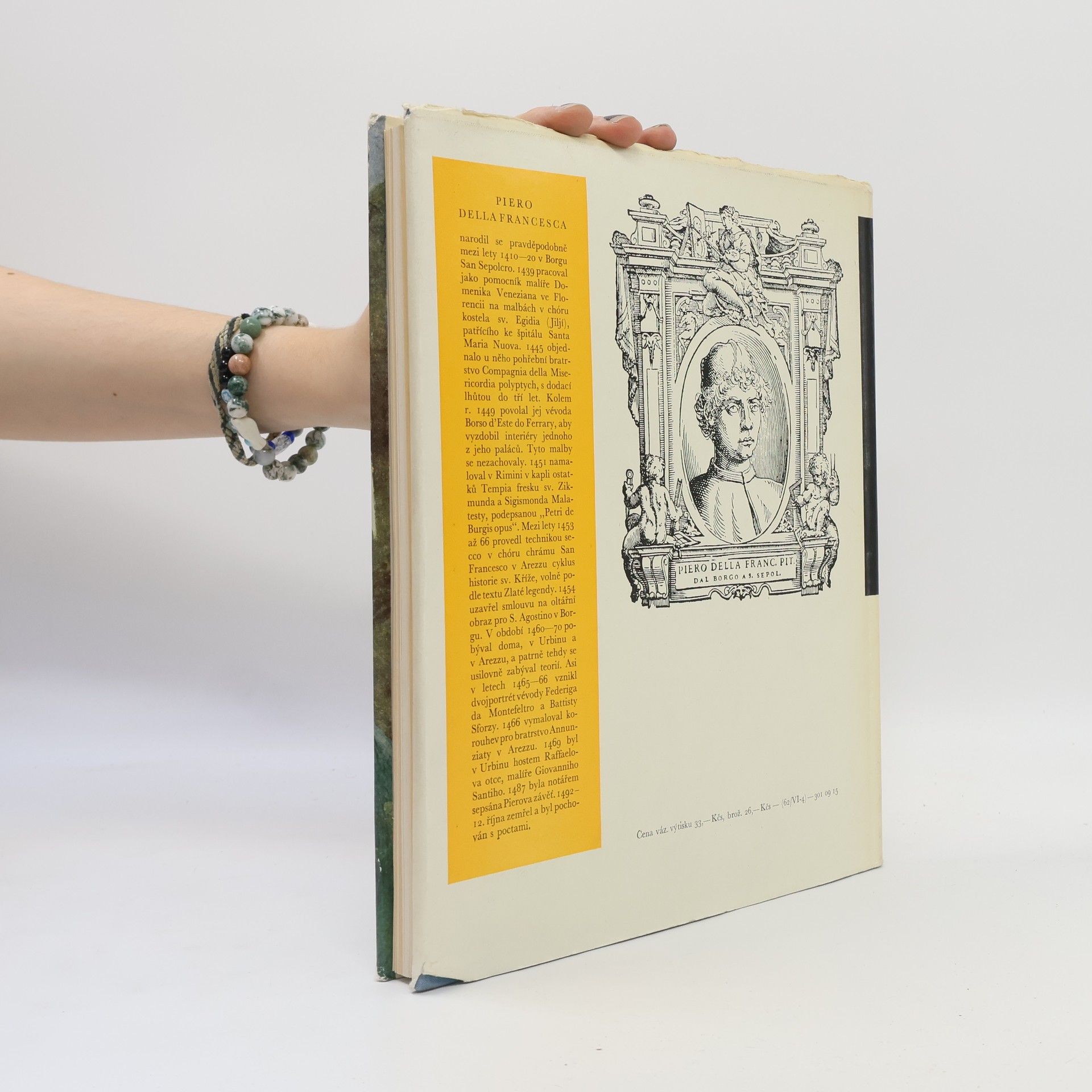 První česká monografie o díle italského malíře 15. stol., zejména o jeho nejznámějším cyklu nástěnných maleb o historii sv. Kříže, zpracované podle Zlaté legendy, v kostele v Arezzu. Jeho dílo, které obsahuje básnický pohled na svět, vysloveny malířskými prostředky, inspirovalo B. Martinů k symfonické skladbě "Fresky Piera della Francesca".