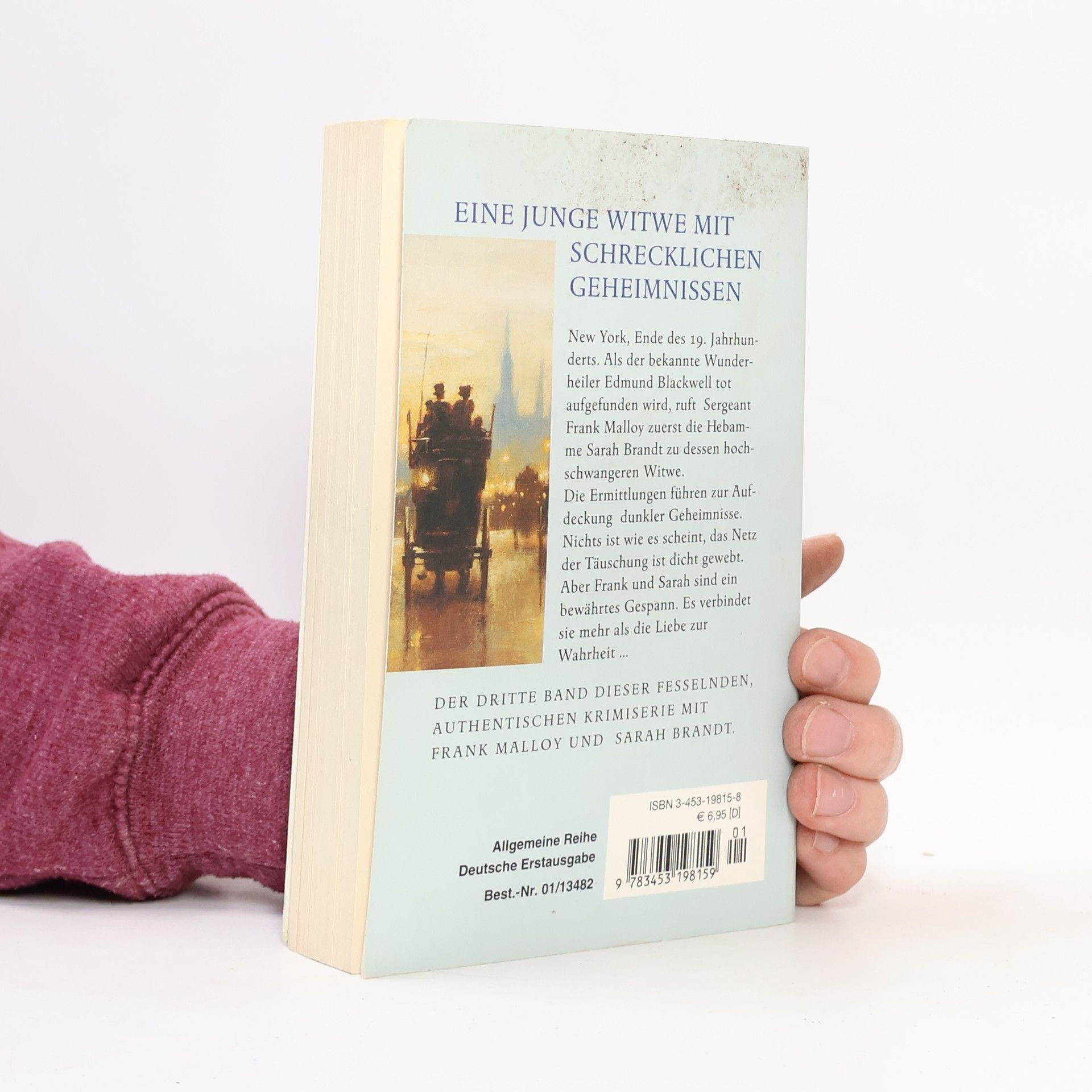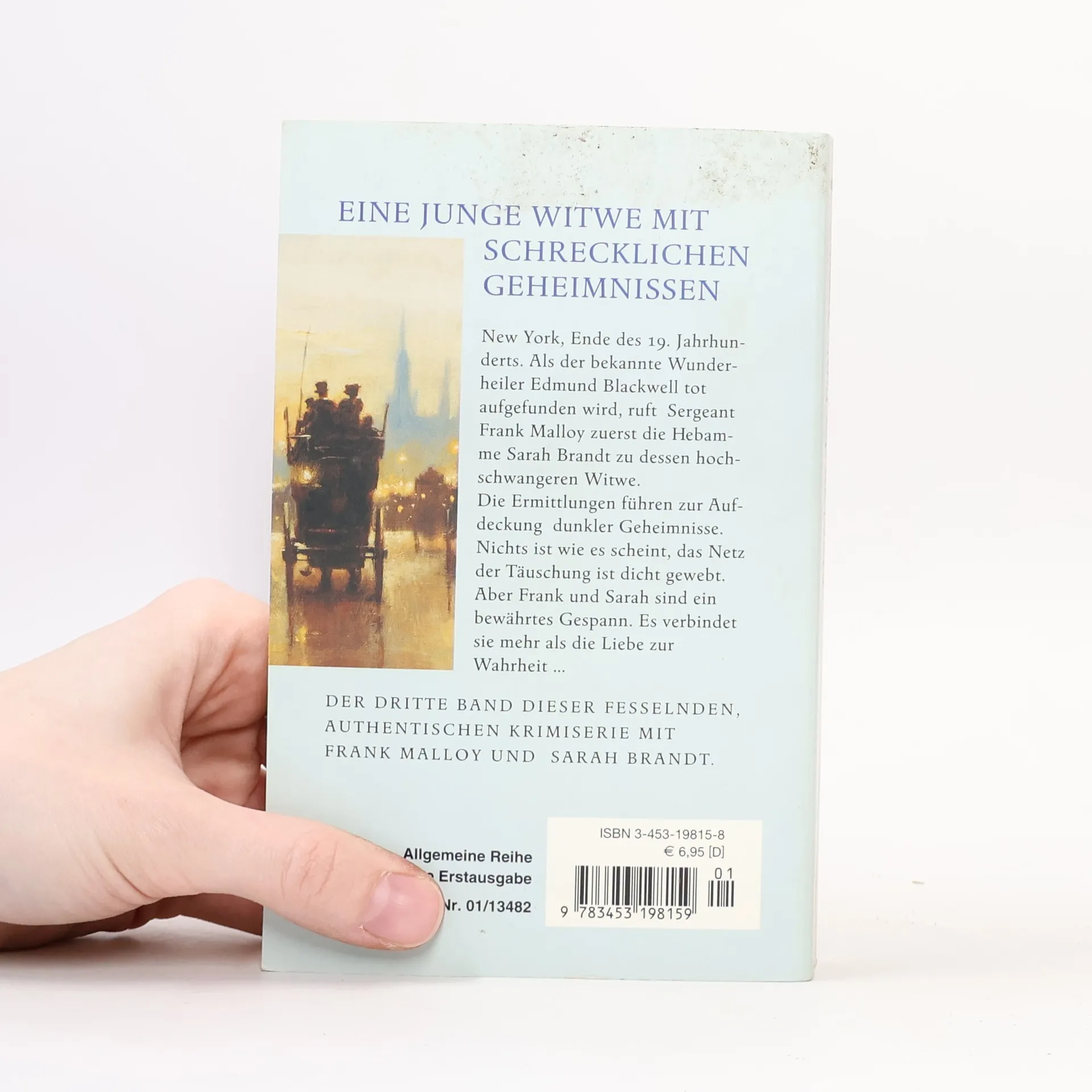 New York, Ende des 19. Jahrhunderts. Als der bekannte Wunderheiler Edmund Blackwell tot aufgefunden wird, ruft Sergeant Frank Malloy zuerst die Hebamme Sarah Brandt zu dessen hochschwangeren Witwe. Die Ermittlungen führen zur Aufdeckung dunkler Geheimnisse. Nichts ist wie es scheint, das Netz der Täuschung ist dicht gewebt. Aber Frank und Sarah sind ein bewährtes Gespann. Es verbindet sie mehr als die Liebe zur Wahrheit …