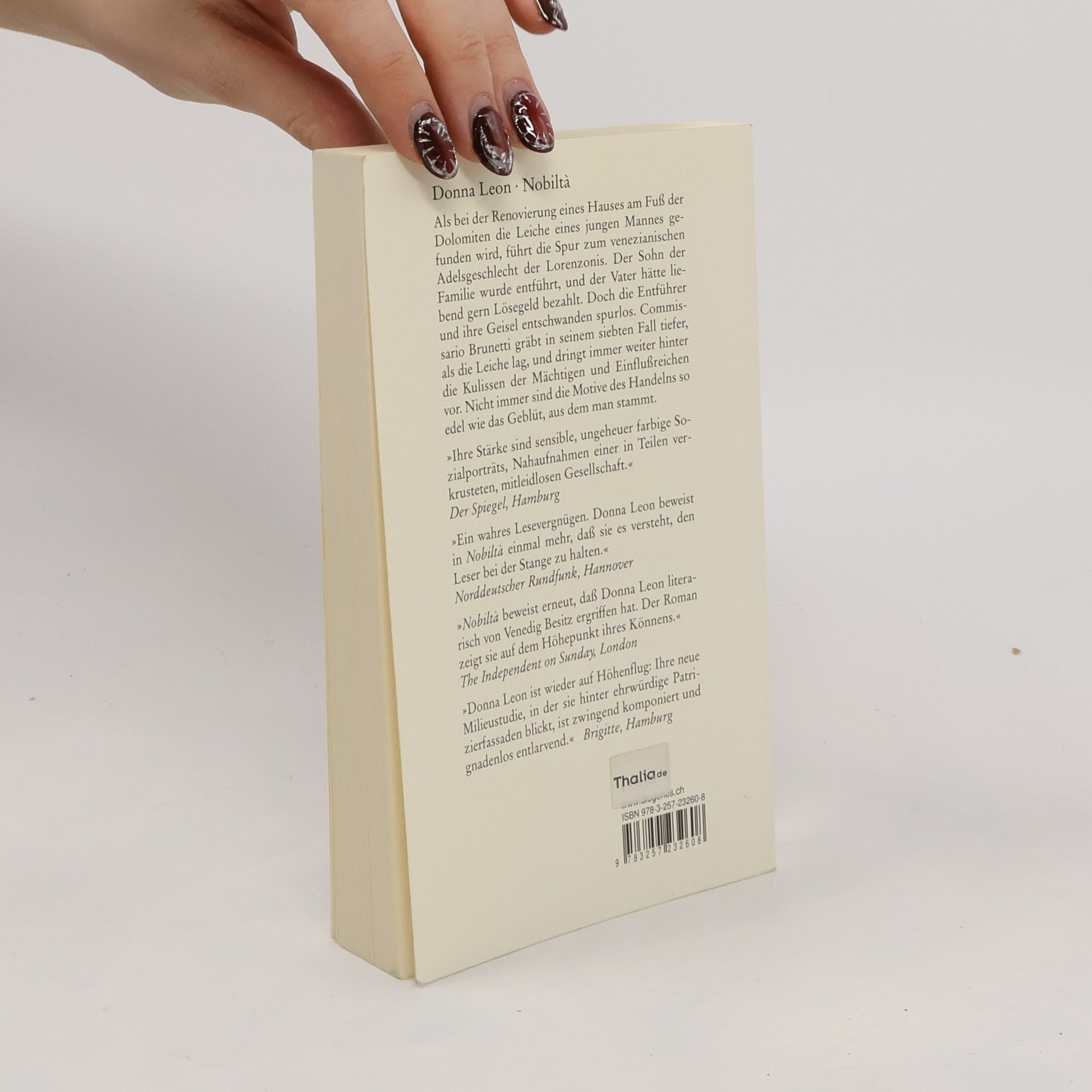 Als bei der Renovierung eines Hauses am Fuß der Dolomiten die Leiche eines jungen Mannes gefunden wird, führt die Spur zum venezianischen Adelsgeschlecht der Lorenzonis und weiter hinter die Kulissen der Mächtigen und Einflußreichen. Commissario Brunetti gräbt in seinem siebten Fall tiefer, als die Leiche lag. Nicht immer sind die Motive des Handelns so edel wie das Geblüt, aus dem man stammt. "