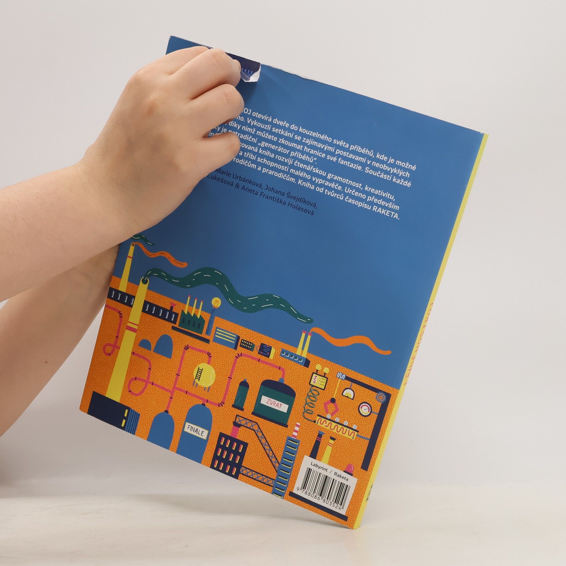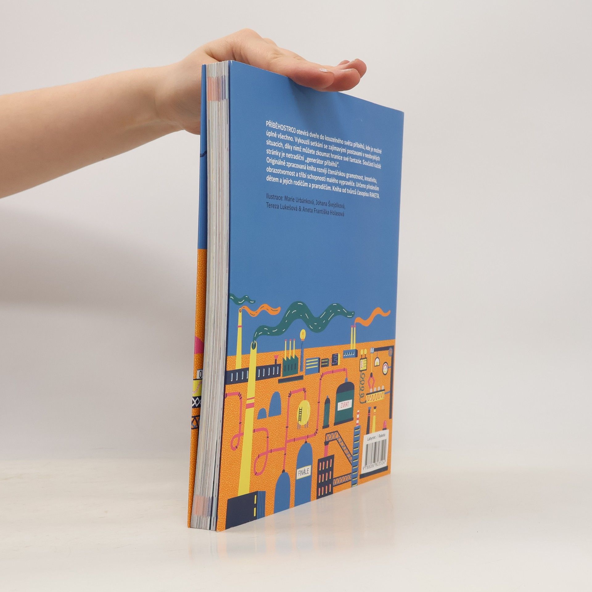 Příběhostroj dětem otevírá dveře do kouzelného světa příběhů, kde je možné úplně všechno. Vykouzlí setkání se zajímavými postavami v neobvyklých situacích, díky nimž mohou děti zkoumat hranice své fantazie. Součástí knihy je netradiční „generátor příběhů“ — během vyprávění se losují náhodné postavy, předměty či situace umístěné v rozích každé stránky. Originálně zpracovaná kniha rozvíjí čtenářskou gramotnost, kreativitu, obrazotvornost a tříbí schopnosti vypravěče. Bohatě ilustrované zábavné úkoly a hry jsou rozděleny do čtyř úrovní od začátečníka až po mistra Příběhostroje. Psát, lepit i kreslit do knihy je dovoleno. Určeno především malým čtenářům od 6 let do 12 let a jejich rodičům a prarodičům. Nová kniha od tvůrců časopisu RAKETA.