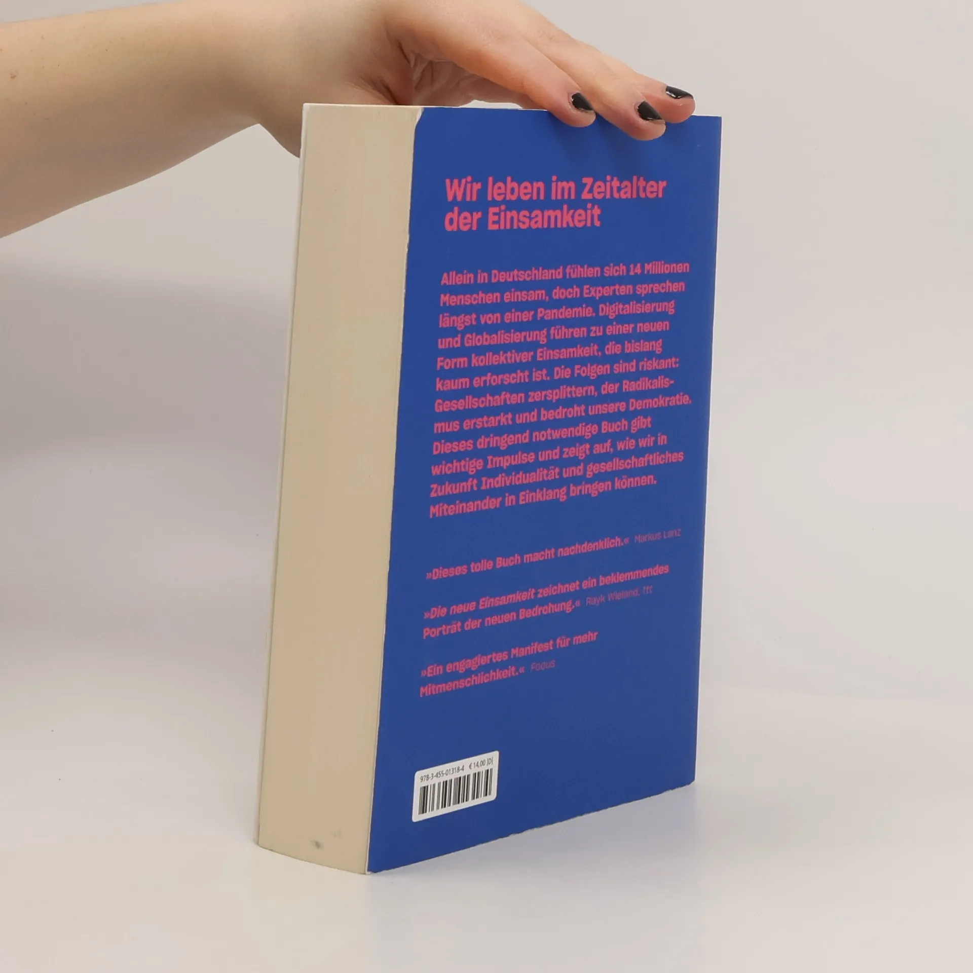 Einsamkeit breitet sich zunehmend in unserer Gesellschaft aus, die Konsum und Flexibilität über Intimität und Verbindlichkeit stellt. Alte Strukturen zerfallen, während die Jungen in eine entwurzelte Zukunft hasten und die Alten zurückgelassen werden. In Deutschland fühlen sich 14 Millionen Menschen einsam, und seit Corona ist soziale Isolation zum globalen Status quo geworden. Experten warnen vor einer Epidemie der Einsamkeit, die durch Digitalisierung und Globalisierung verstärkt wird und bislang wenig erforscht ist. Die Folgen sind gravierend: Gesellschaften zerfallen, Radikalismus gewinnt an Boden und bedroht die Demokratie. Der Diskurs über die neue Einsamkeit ist notwendig, um zu hinterfragen, ob unsere kapitalistisch geprägte Gesellschaft dem sozialen Wesen Mensch gerecht wird. Es gilt, Wege zu finden, Individualität und gemeinschaftliches Miteinander zu vereinen. Die Zukunft unserer Gesellschaft steht auf der Kippe. In Deutschland leben 41% der Haushalte allein, 30% davon sind armutsgefährdet. Zudem fühlen sich 25% der Jugendlichen einsam. Einsamkeit ist ein unsichtbares, aber ernstzunehmendes Gefühl, das erhebliche gesundheitliche Folgen hat.