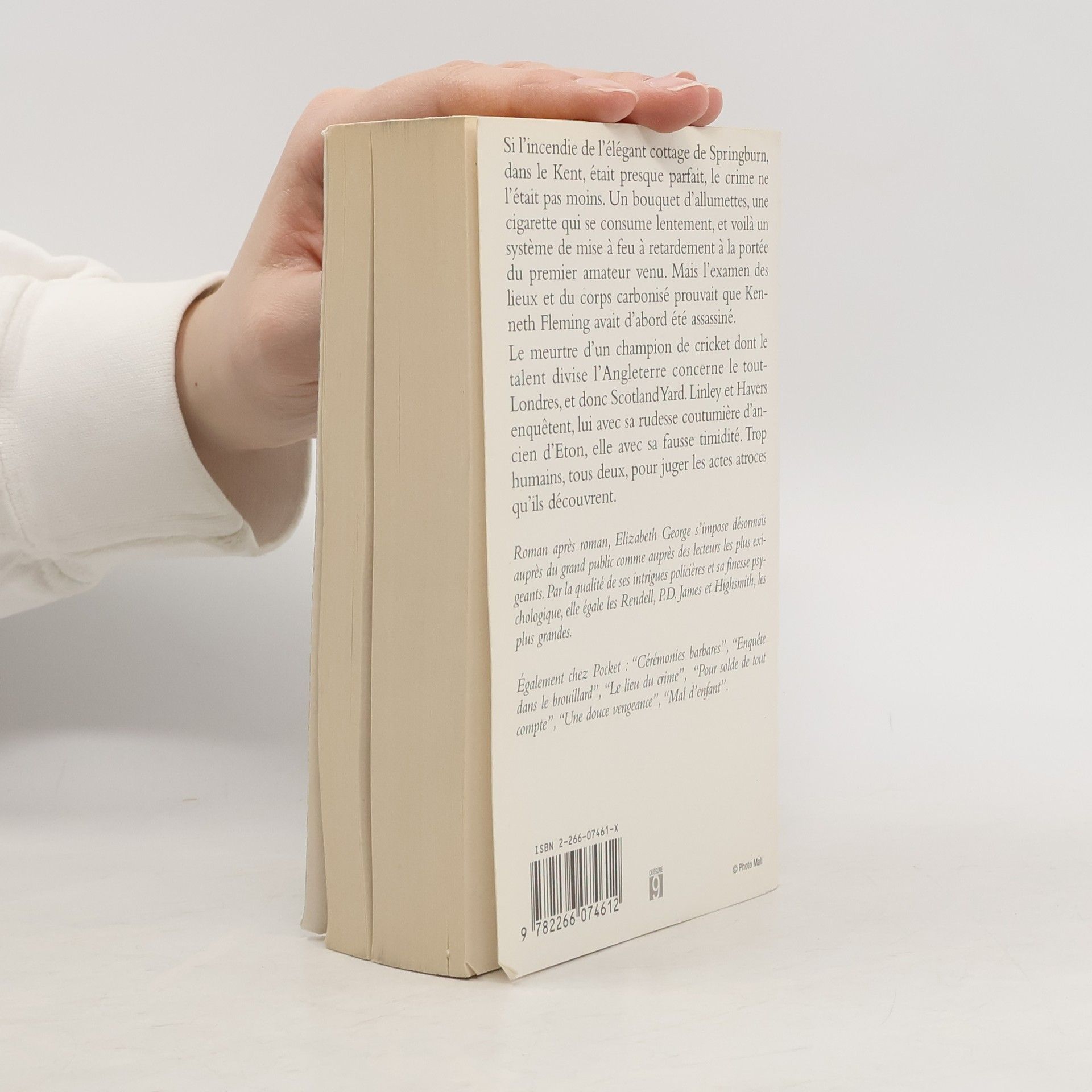 Si l'incendie de l'élégant cottage de Springburn, dans le Kent, était presque parfait, le crime ne l'était pas moins. Un bouquet d'allumettes, une cigarette qui se consume lentement, et voilà un système de mise à feu à retardement à la portée du premier amateur venu. Mais l'examen des lieux et du corps carbonisé prouvait que Kenneth Fleming avait d'abord été assassiné. Le meurtre d'un champion de cricket dont le talent divise l'Angleterre concerne le tout-Londres, et donc Scotland Yard. Linley et Havers enquêtent, lui avec sa rudesse coutumière d'ancien d'Eton, elle avec sa fausse timidité. Trop humains, tous deux, pour juger les actes atroces qu'ils découvrent.