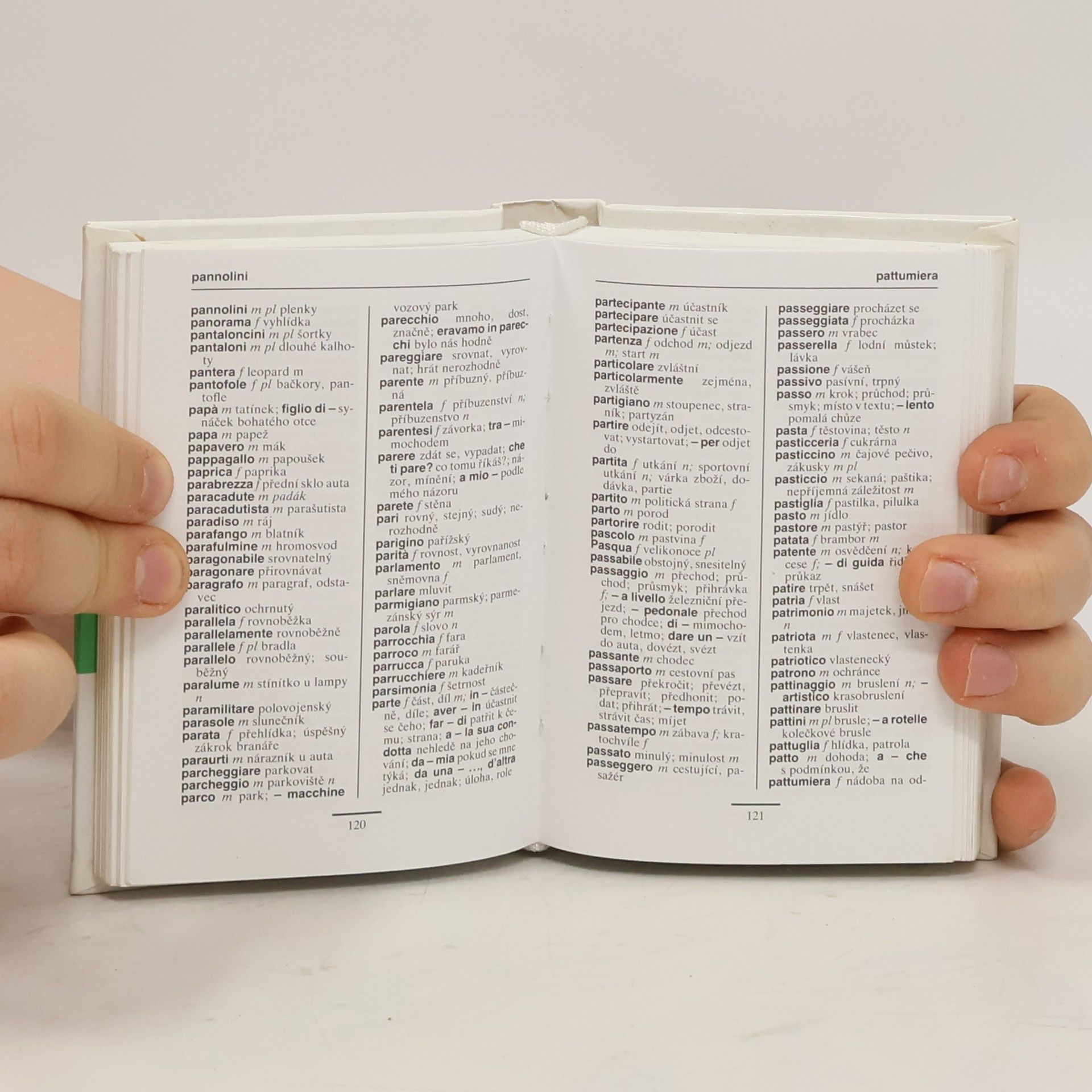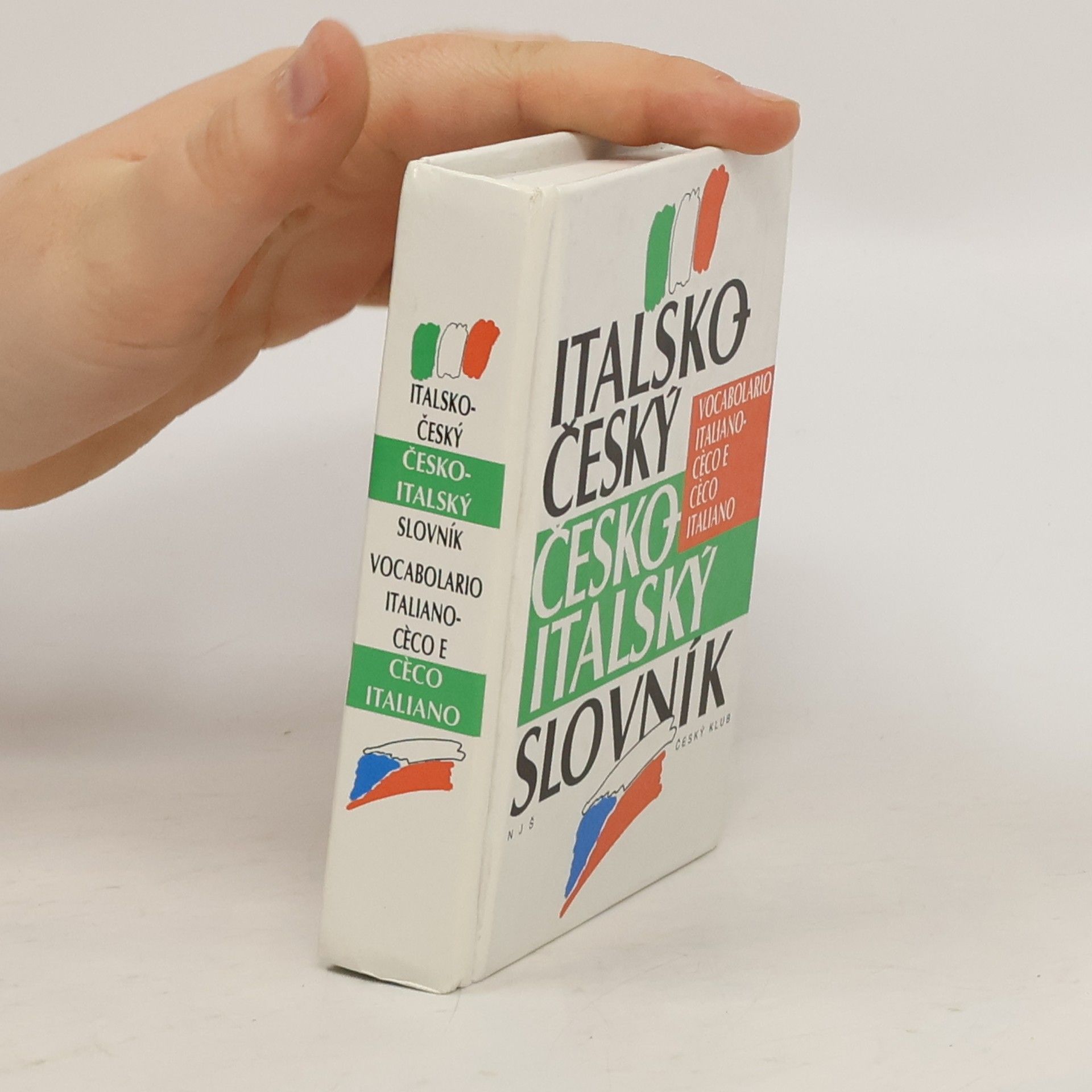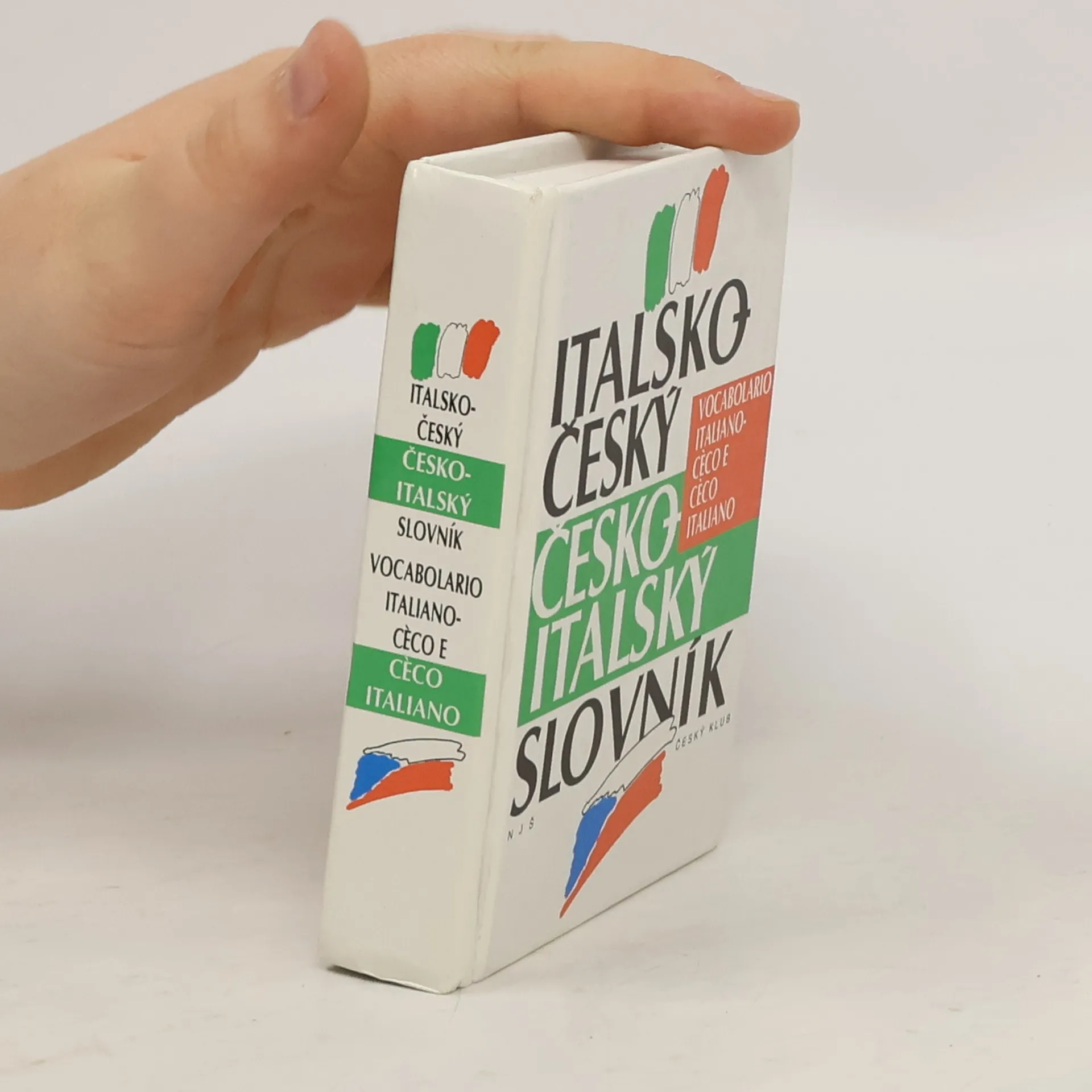 Kapesní oboustranný italsko-český a česko-italský slovník se stručnou gramatikou v pevné vazbě.