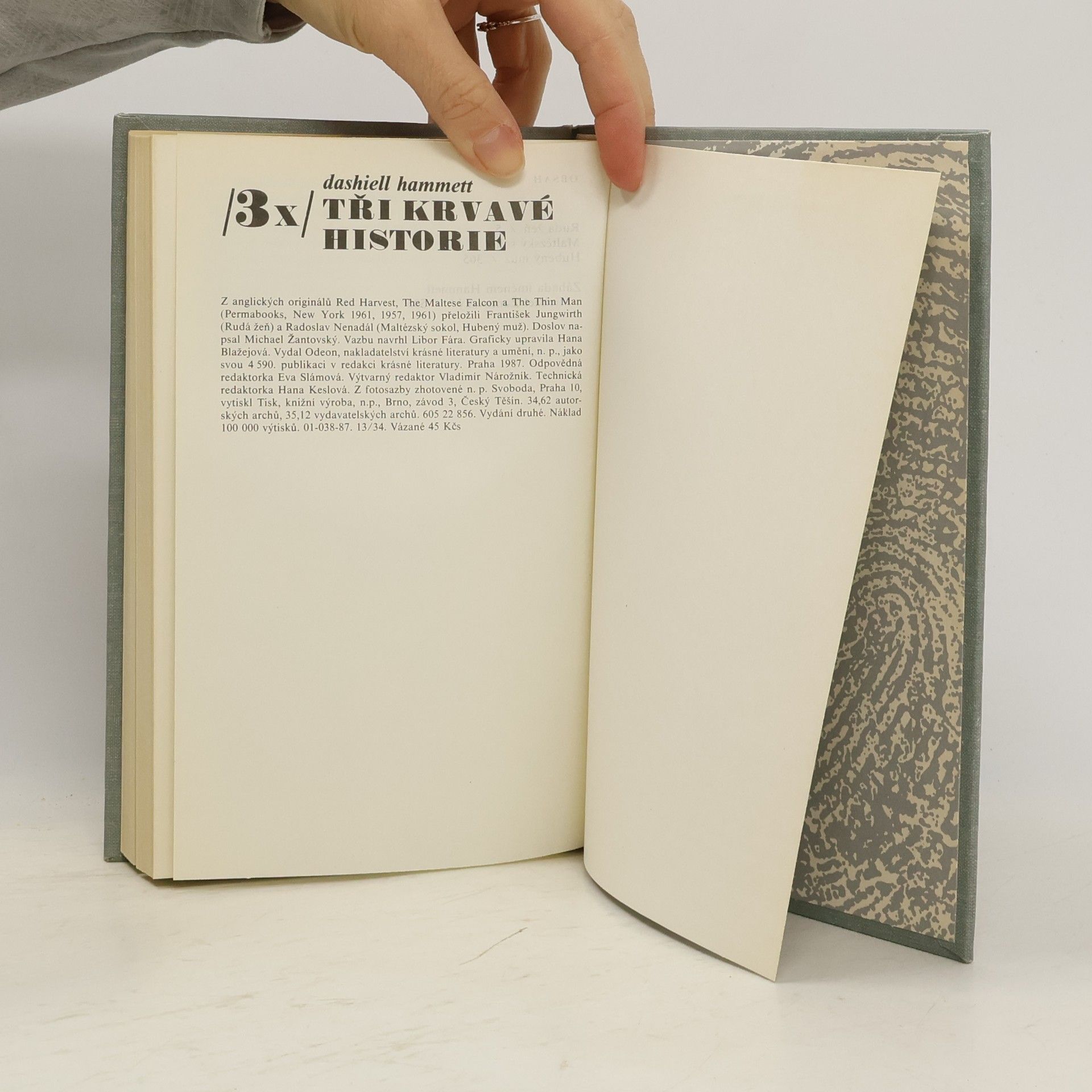Kniha obsahuje tři případy : 1. Rudá žeň - přeložil František Jungwirth. 2. Maltézský sokol - přeložil Radoslav Nenadál. 3. Hubený muž - přeložil Radoslav Nenadál. Doslov „Záhada jménem Hammett“ napsal Michael Žantovský. Vydání druhé.