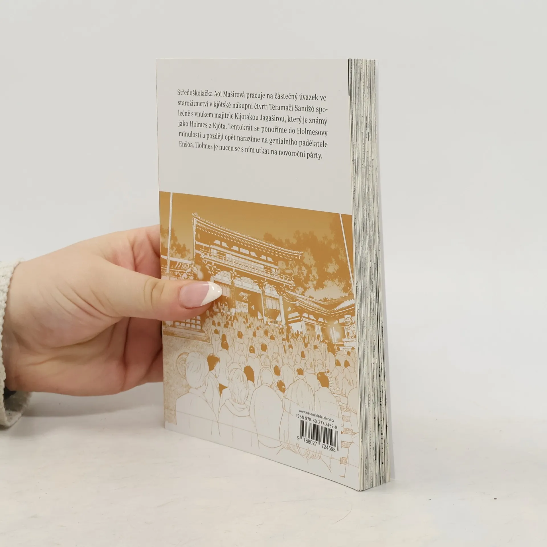 Středoškolačka Aoi Maširová pracuje na částečný úvazek ve starožitnictví v kjótské nákupní čtvrti Teramači Sandžó, společně s vnukem majitele, Kijotakou Jagaširou, který je známý jako Holmes z Kjóta. Tentokrát se ponoříme do Holmesovy minulosti a později opět narazíme na geniálního padělatele Enšóa. Holmes je nucen se s ním utkat na novoroční párty.