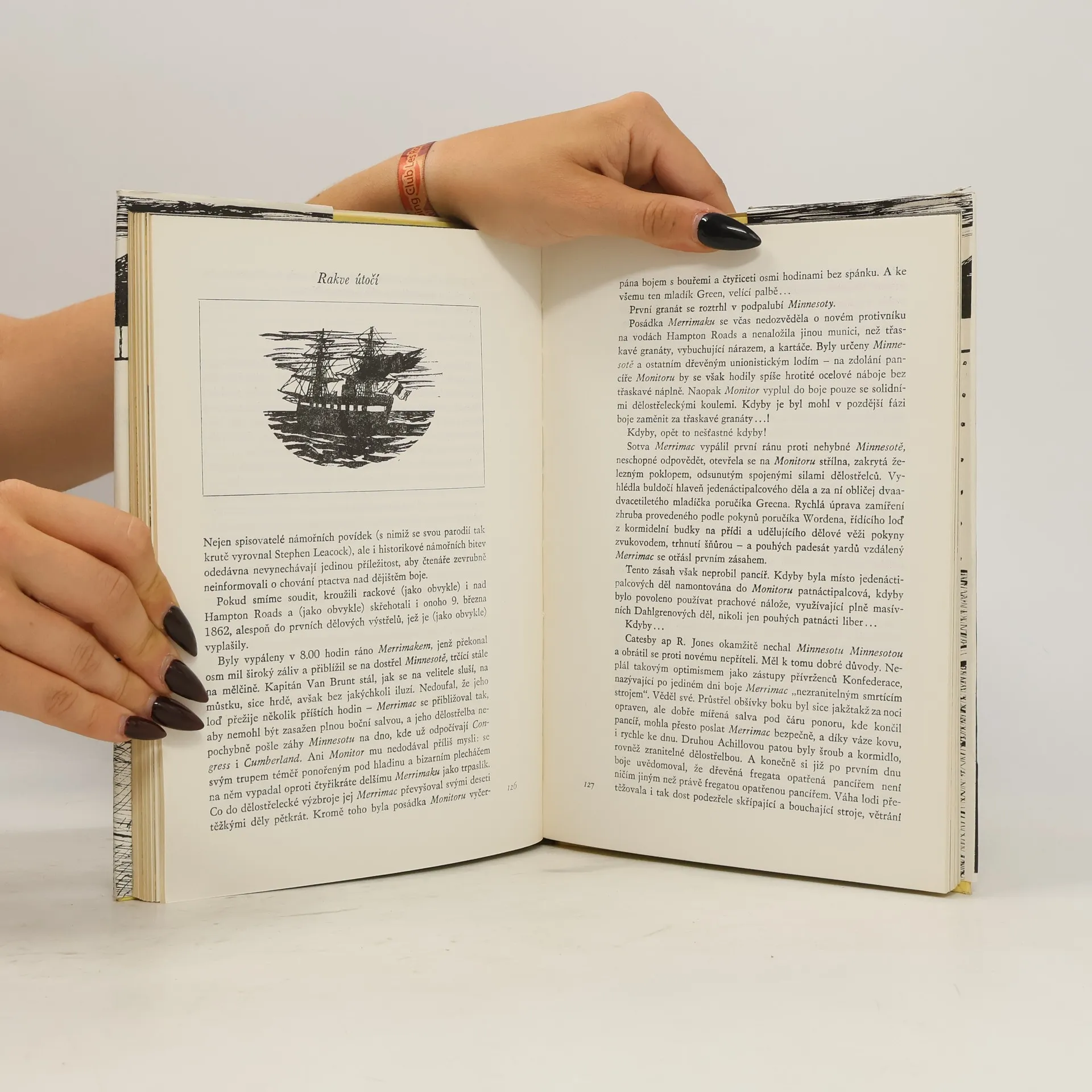 Ústředním motivem čtivě psané knížky je významná bitva dvou obrněných lodí – seveřanského Monitoru a jižanského Merrimaku – v níž se poprvé v dějinách projevila strašná tvář moderní technické války. Tuto válečnou epizodu, která ovlivnila další průběh války Severu proti Jihu, zasazuje autor do širokého rámce historických událostí, jež se snaží zbavit legend a mýtů.