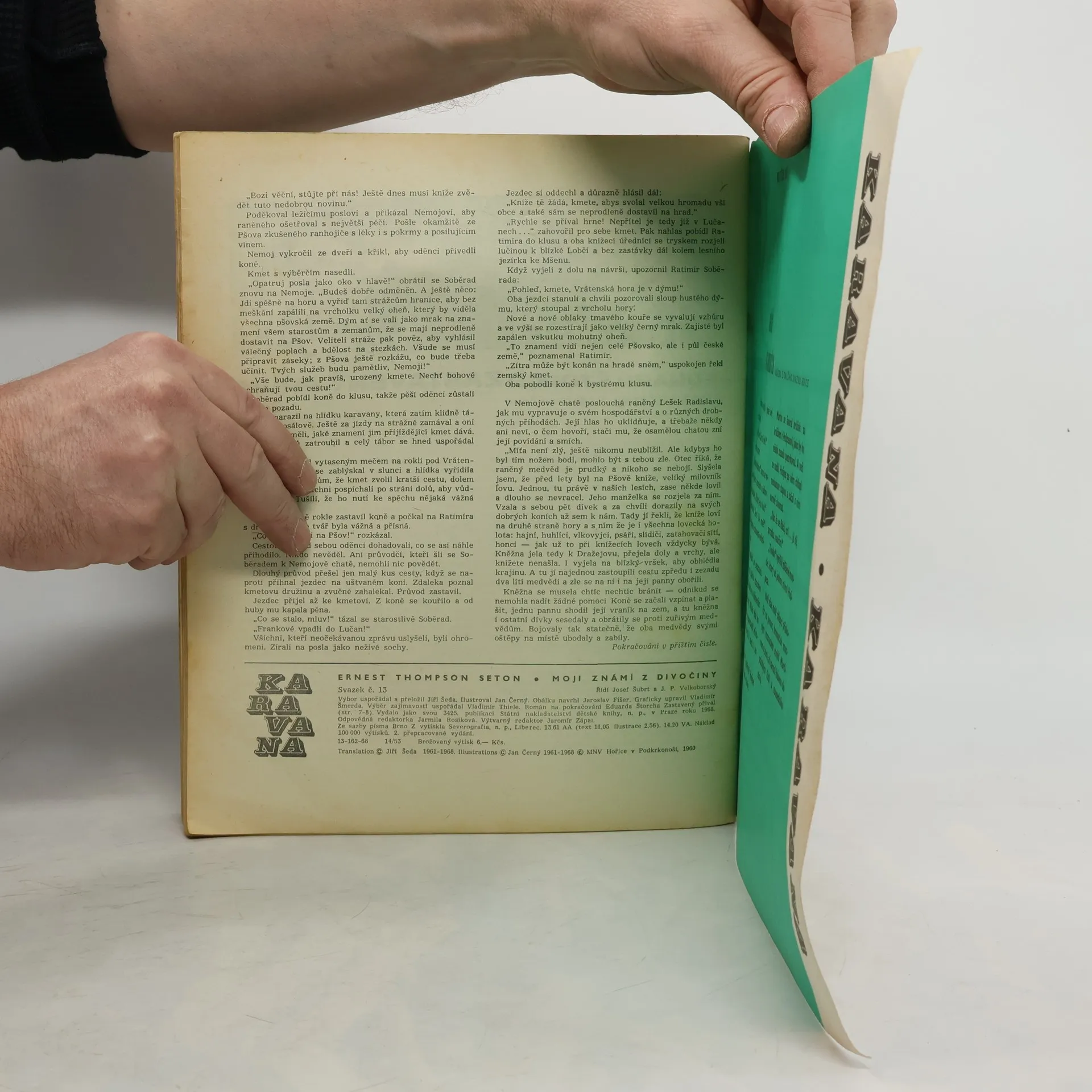 Výbor z povídek o přírodě a divoce žijících zvířatech USA a Kanady (Tita, Krag, Štěk, Billy z pustiny, Divočák, Winnipežský vlk, Vej-ača), pořízený z povídkových sbírek (Moji přátelé z divočiny, Ze života lovné zvěře,Zvířata-hrdinové) kanadského spisovatele, který většinu života strávil v USA a v Kanadě a jako přírodovědec studoval tamní přírodu a zvířenu. V povídkách tohoto výboru podává pravdivý záznam o životě svých známých z divočiny. Na konci sešitu je na pokračování román - „Eduard Štorch - Zastavený příval (List z počátku našich dějin) - 2. část