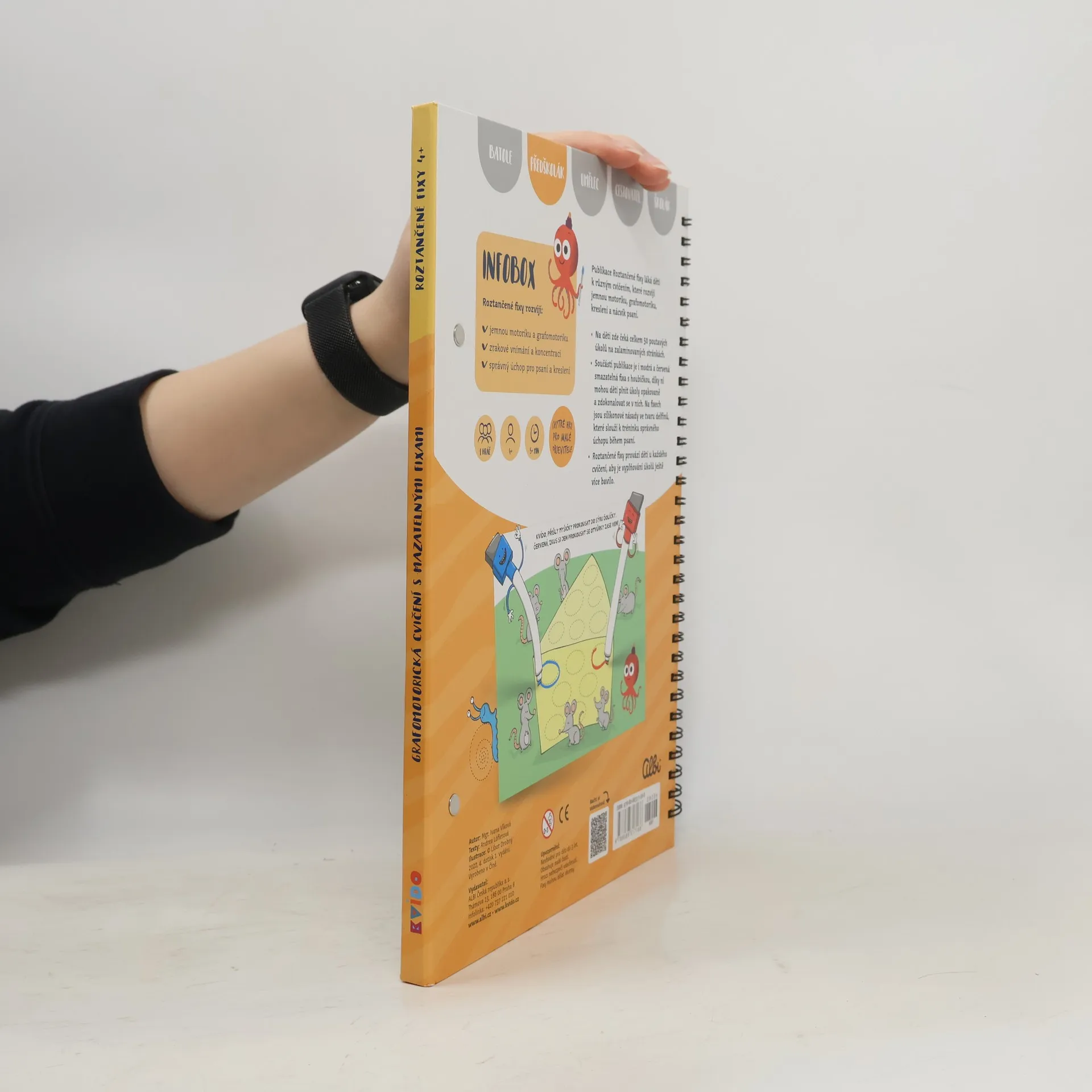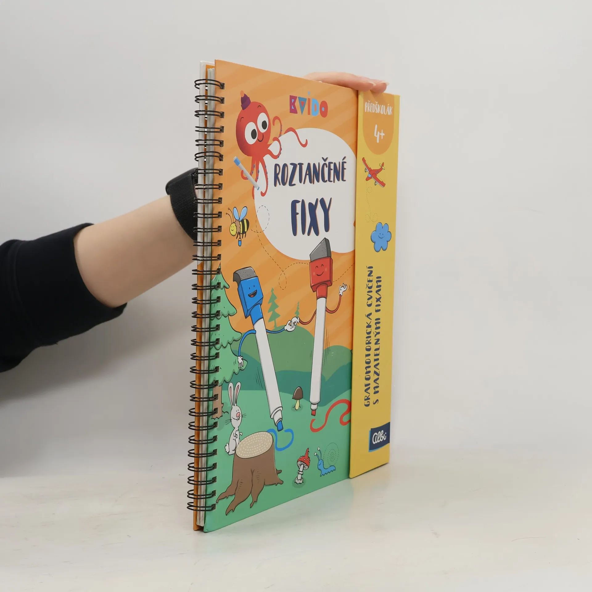 Roztančené fixy jsou interaktivní grafomotorické sešity plné obrázků a aktivit s příběhy 2 barevných fixek, které učí Kvída a předškolní děti kreslit a psát a rozvíjet přitom jemnou motoriku a zrakové vnímání. Díky mazatelným fixům můžou děti sešity vyplňovat opakovaně a procvičovat si tak úkoly znovu a znovu. Každý sešit Roztančené fixy má 50 stran plných úkolů pro děti předškolního věku. Kroužková vazba a zavírání na magnet je vhodné i do batůžku na cesty. Nově obsahují fixy všech vydání gumové delfínky, které napomáhají správnému úchopu.